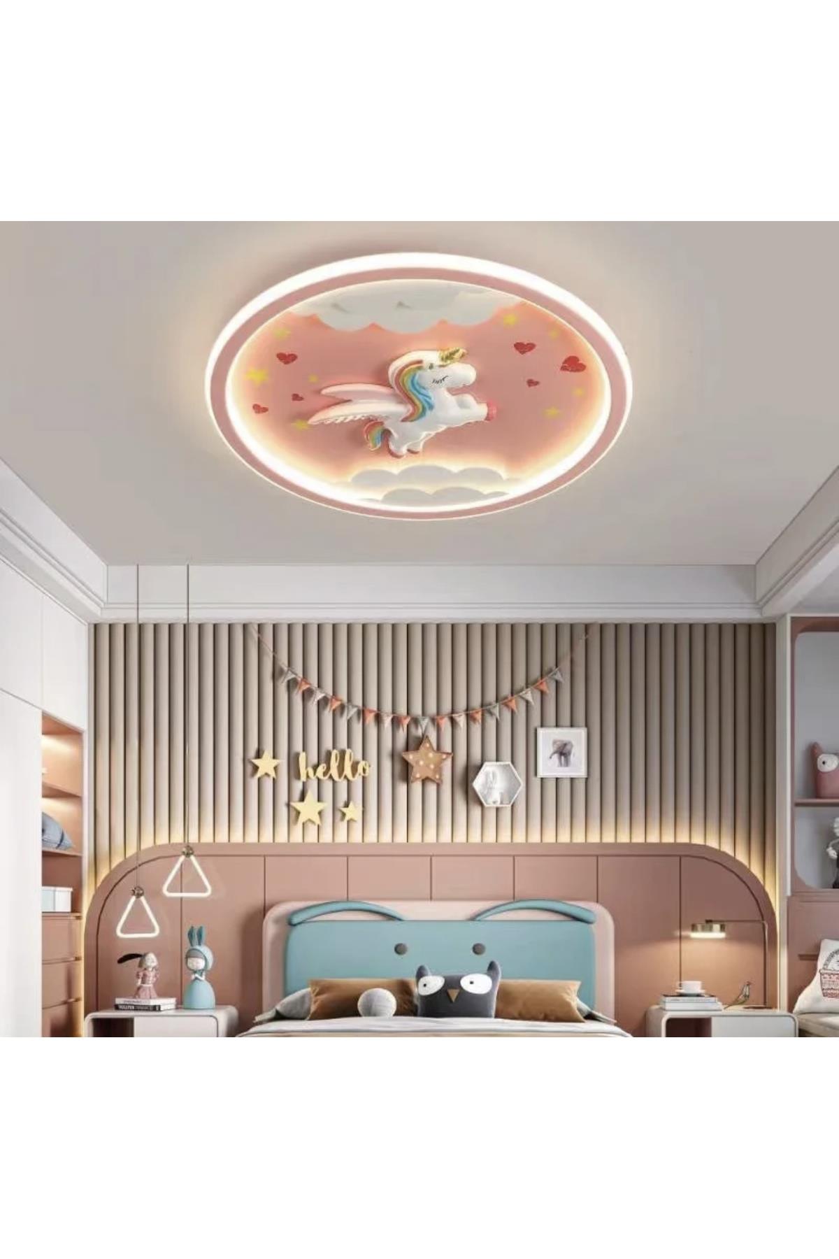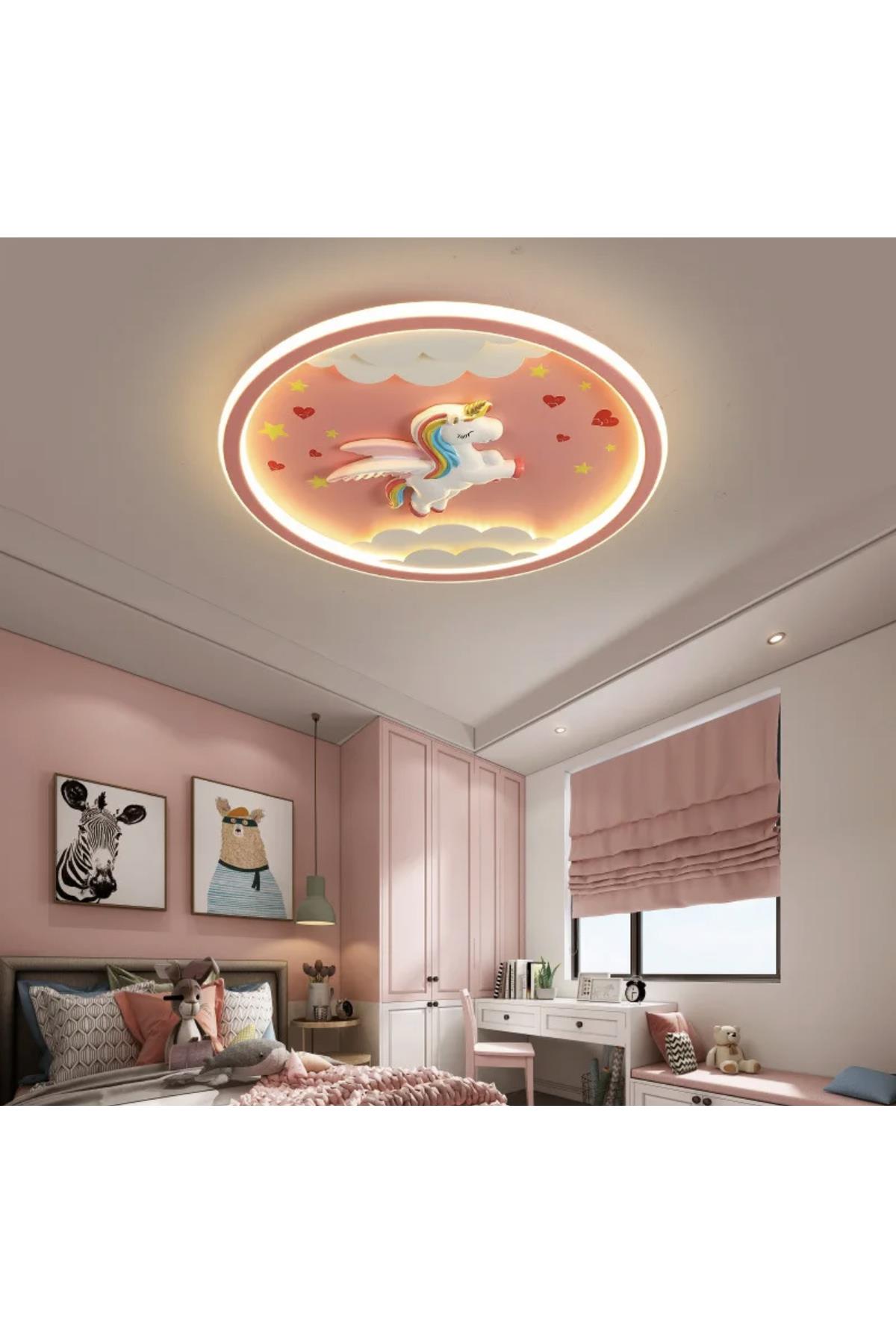 3 Renk Kumandalı Dimmer Özellikli Pegasus Led Avize Çocuk Odası Avize Pembe