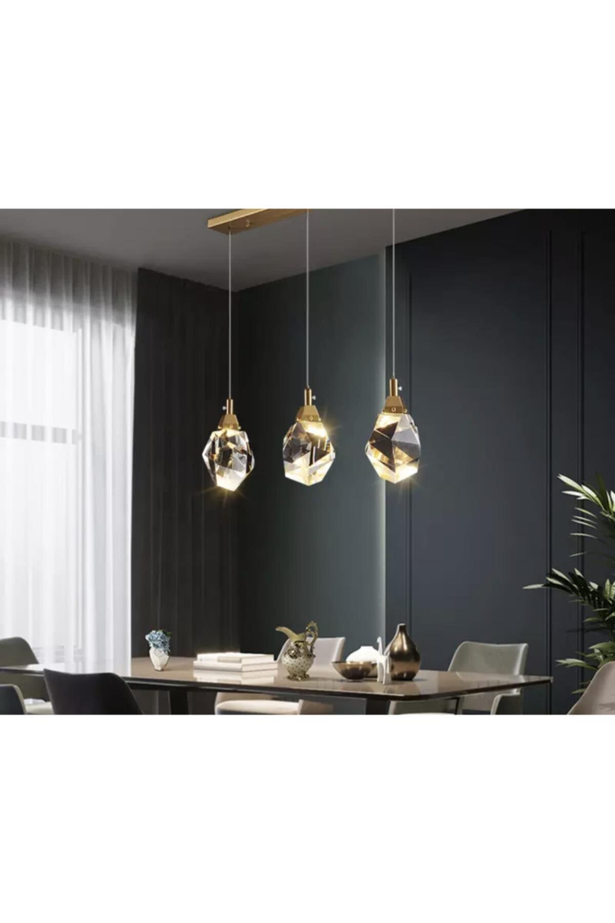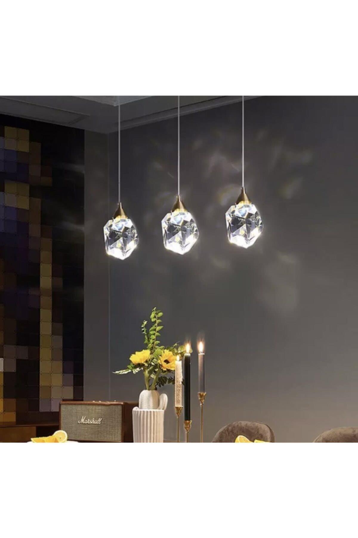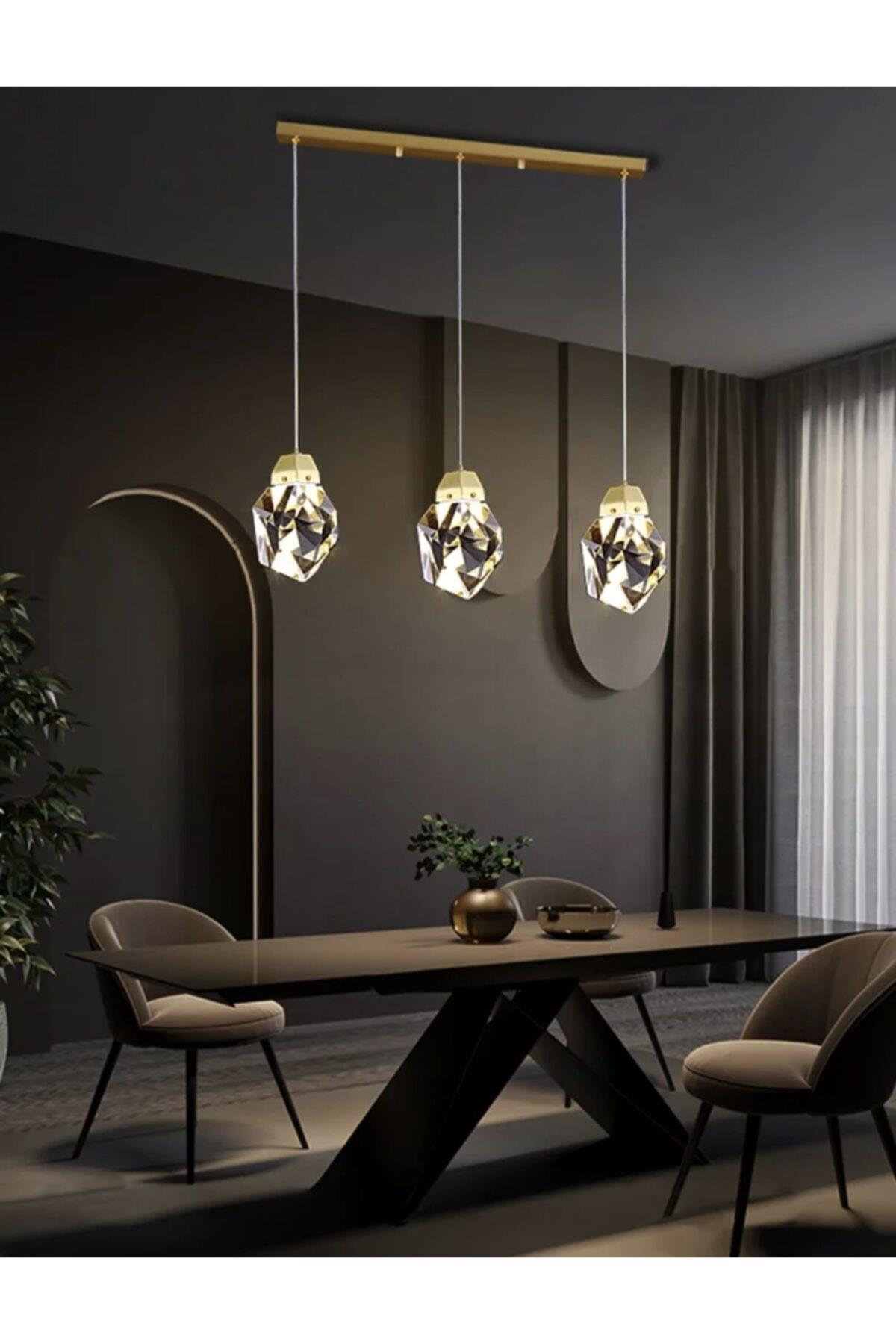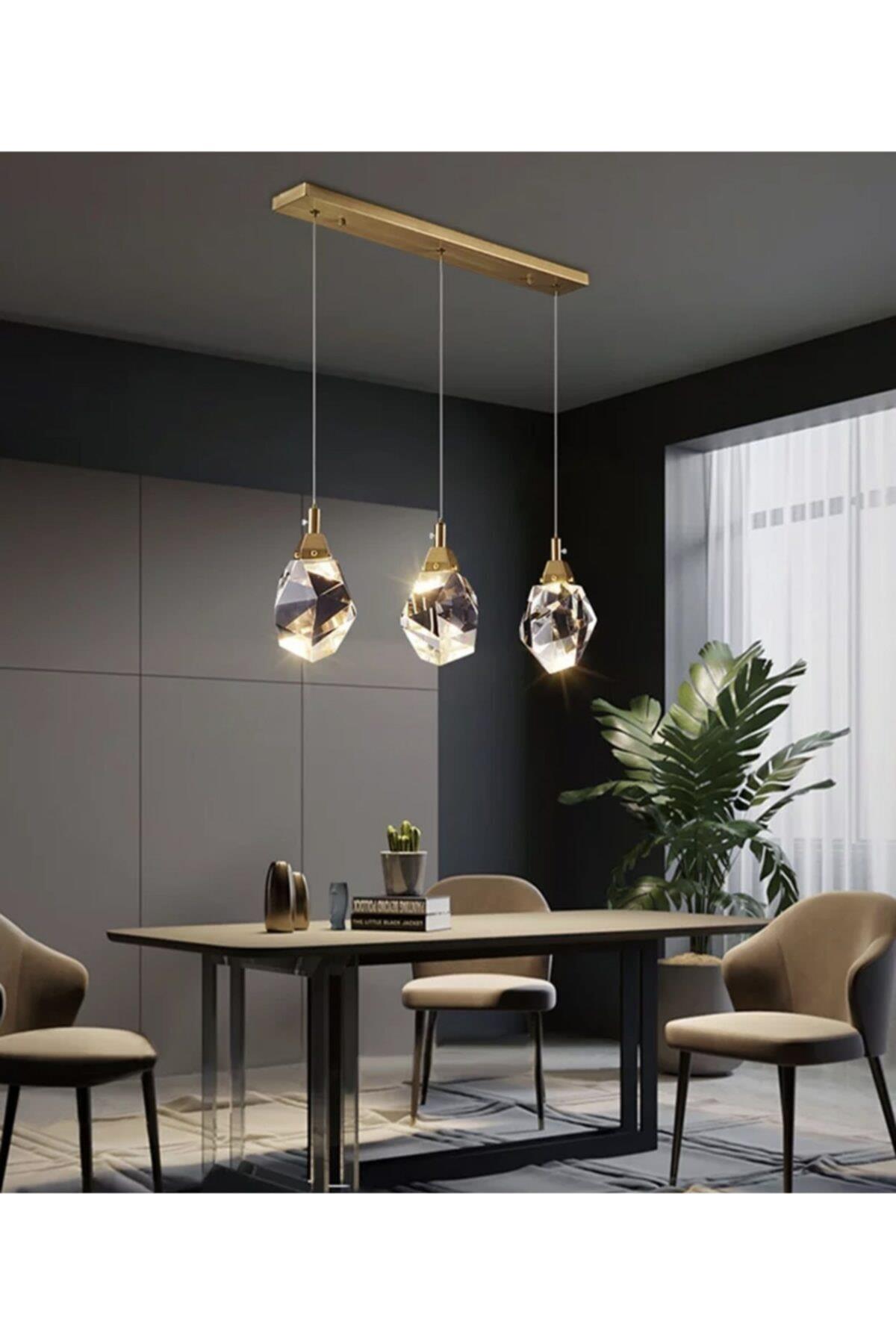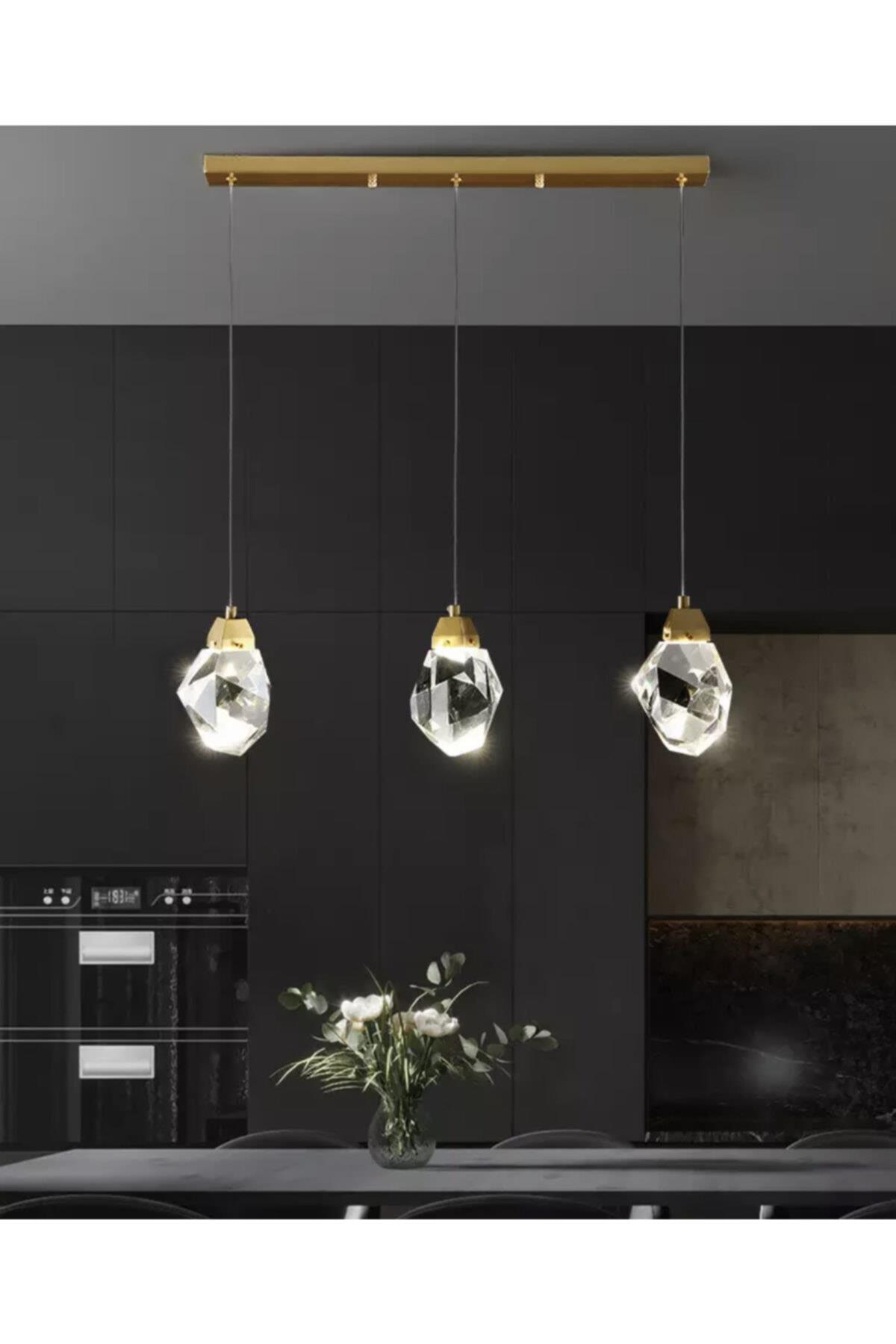A+ Luxury Modern Kristalize Cam Sarkıt Üçlü Sıralı Led Avize Gold Sarı
