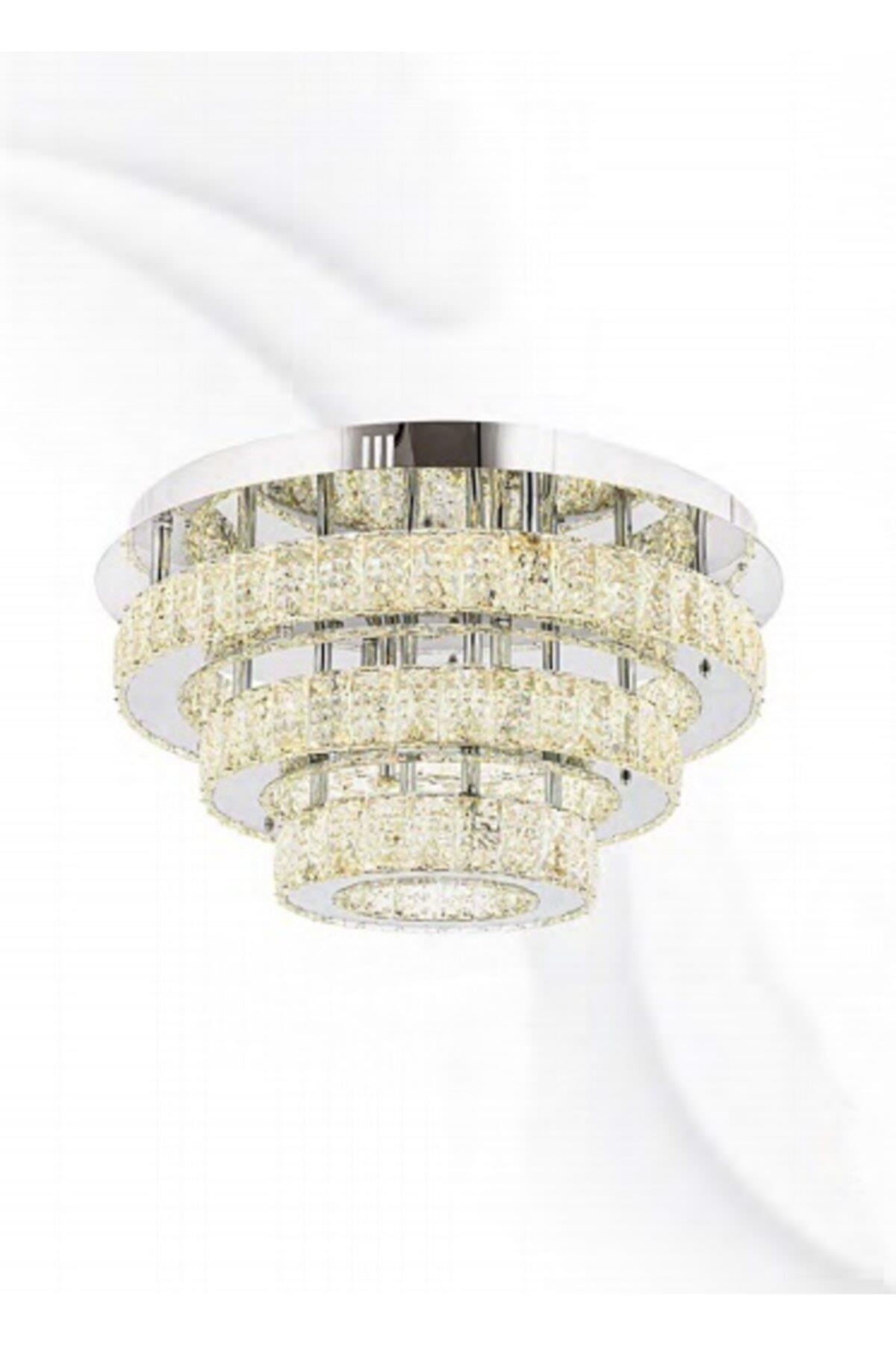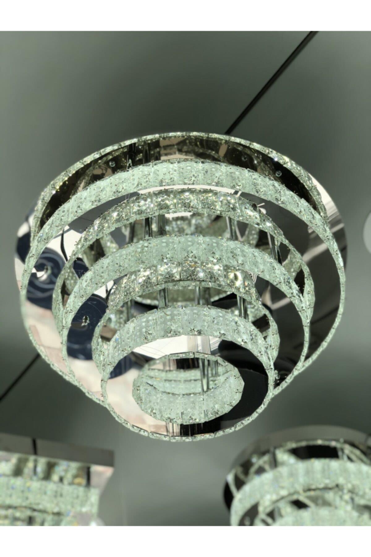 A+ Luxury Modern Plafonyer Kristal Taşlı Power Led Avize Kademeli 3 Renk Krom