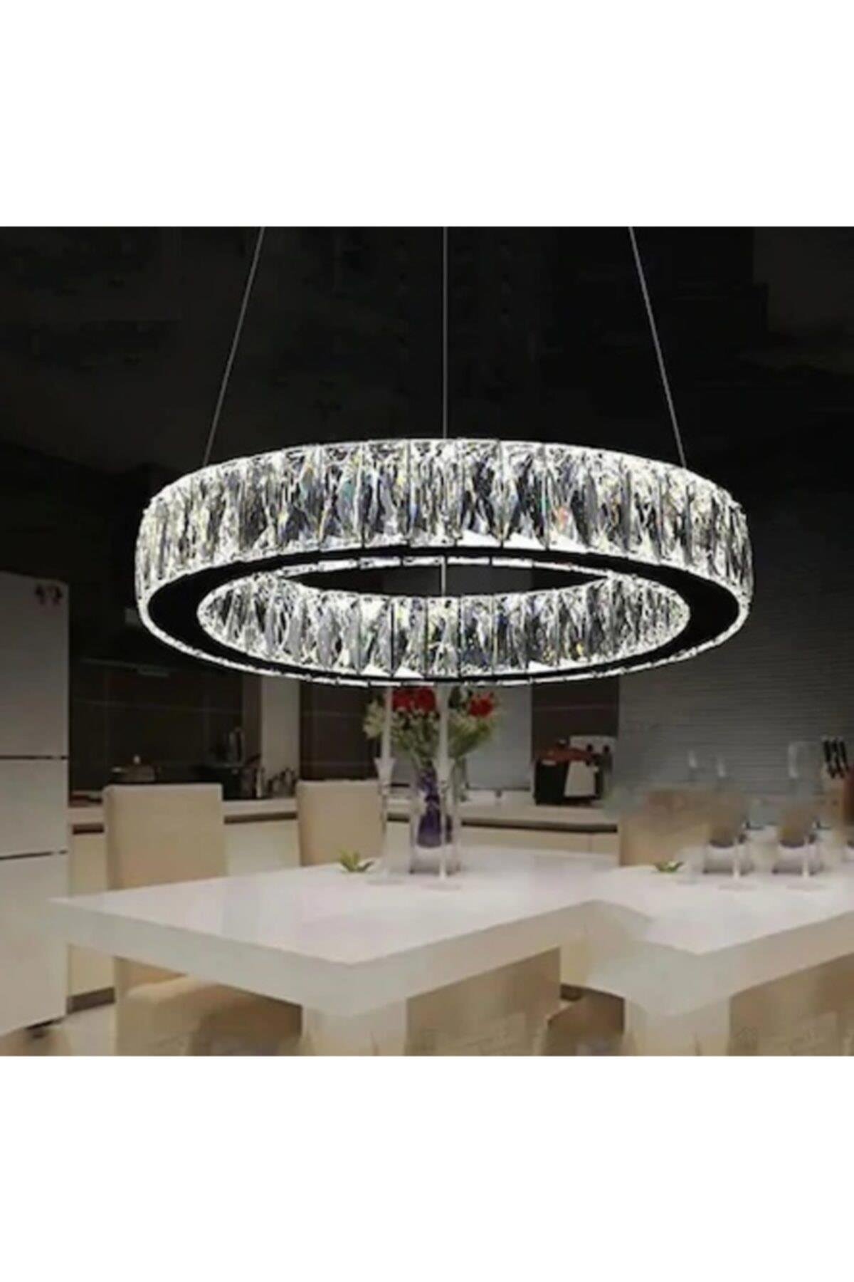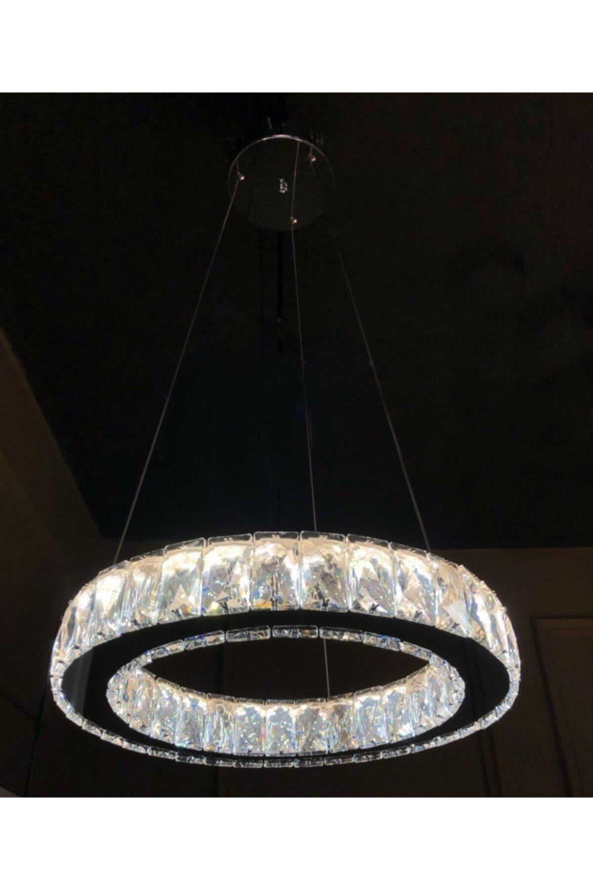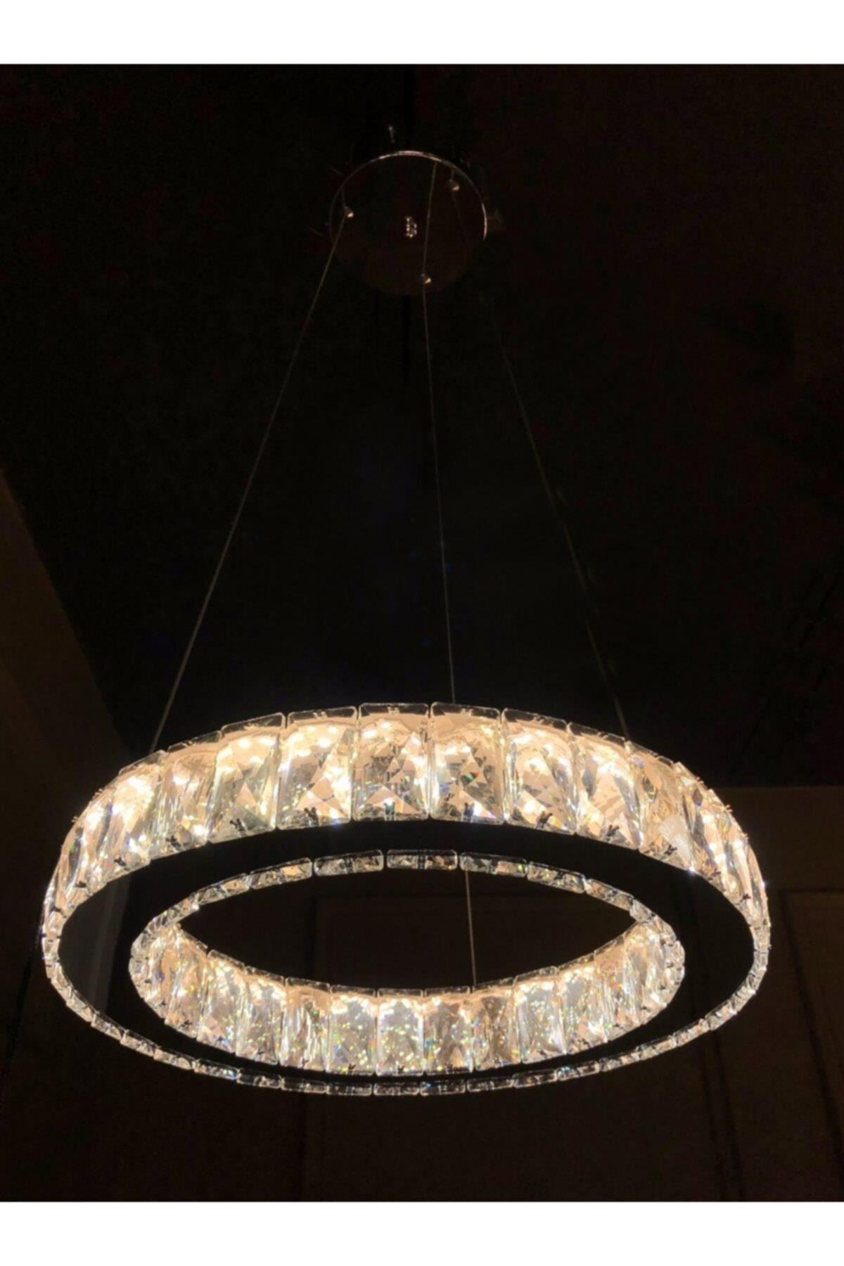 A Modern Sarkıt Kristal Taşlı Power Led Avize Kademeli 3 Renk Ledli Avize