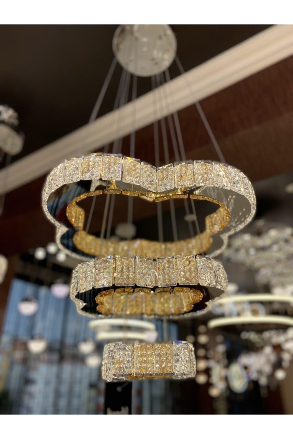 A+ Modern Sarkıt Üçlü Kristal Taşlı Power Led Avize Kademeli 3 Renk Kumandalı Krom
