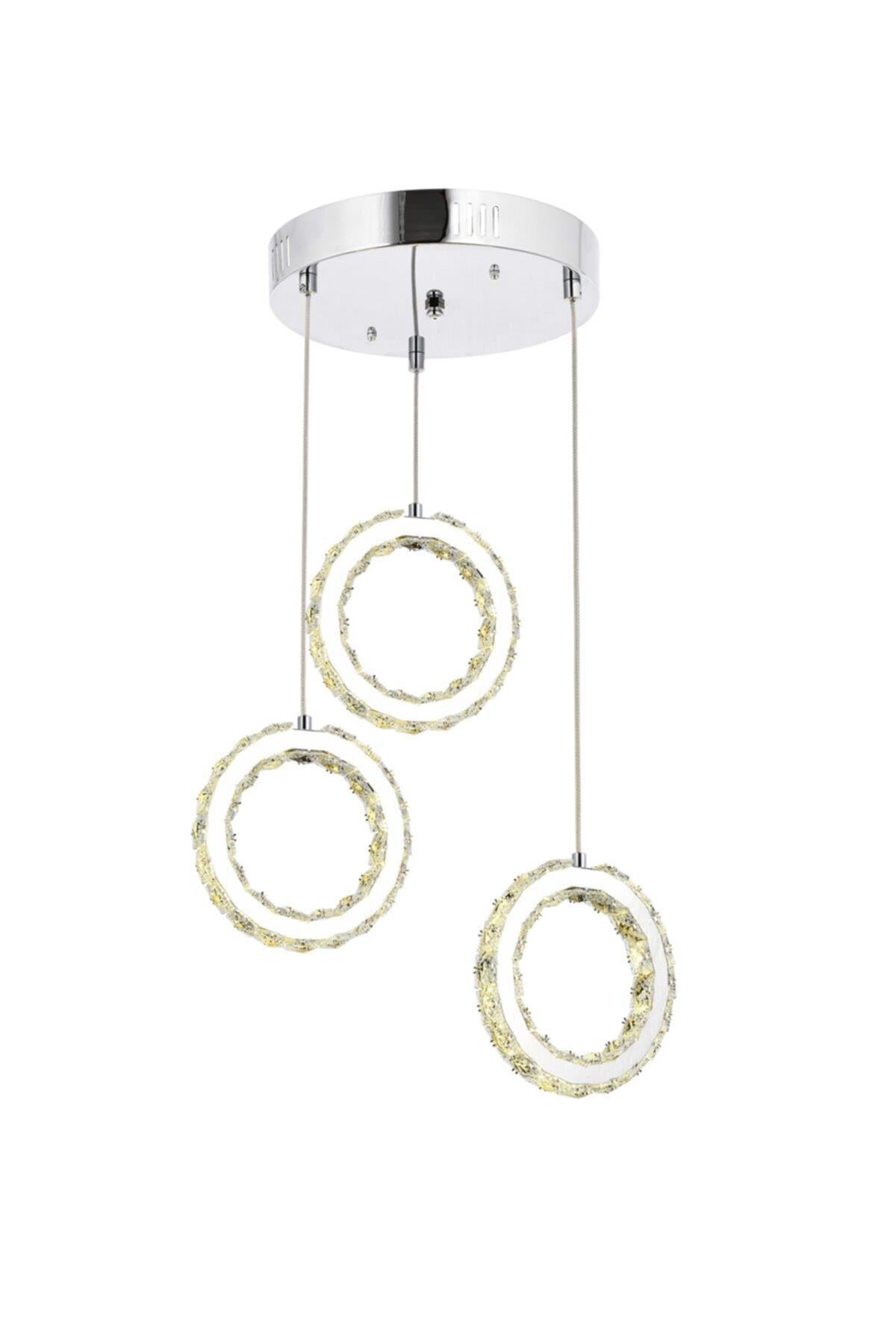 A+ Modern Üçlü Sarkıt Avize Kristal Taşlı Power Kademeli 3 Renk Krom Led Avize