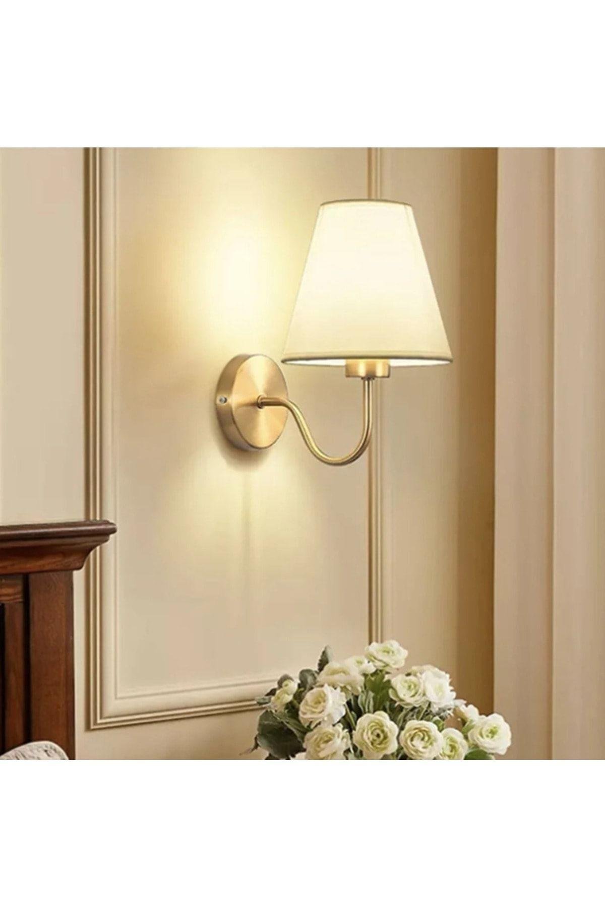 Duvar Aplik Eksitme Gold Gövde Beyaz Abajur Modern Şık Görsellik