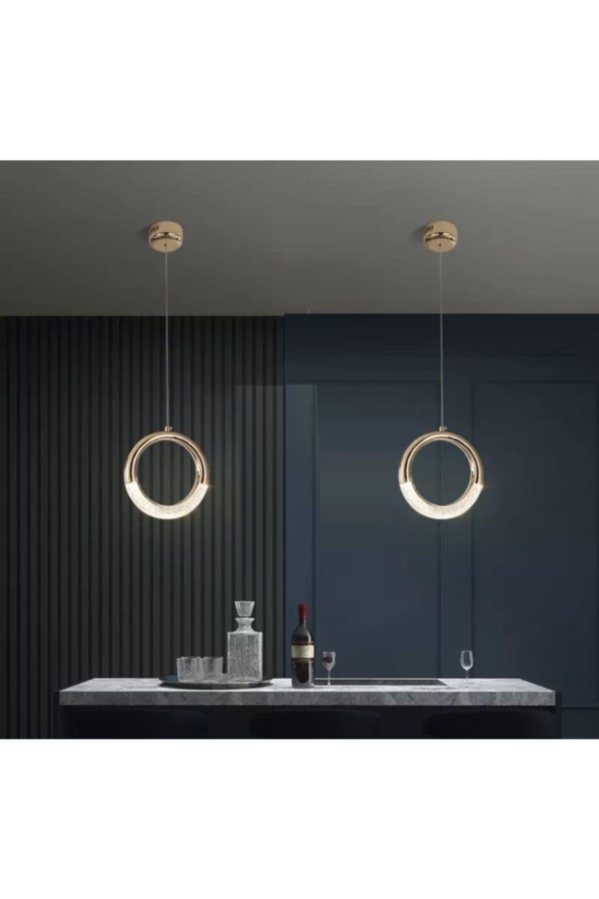 Elegance Luxury Tasarım Modern Tekli Sarkıt Led Avize Gold Sarı 2 Adet Set Fiyat