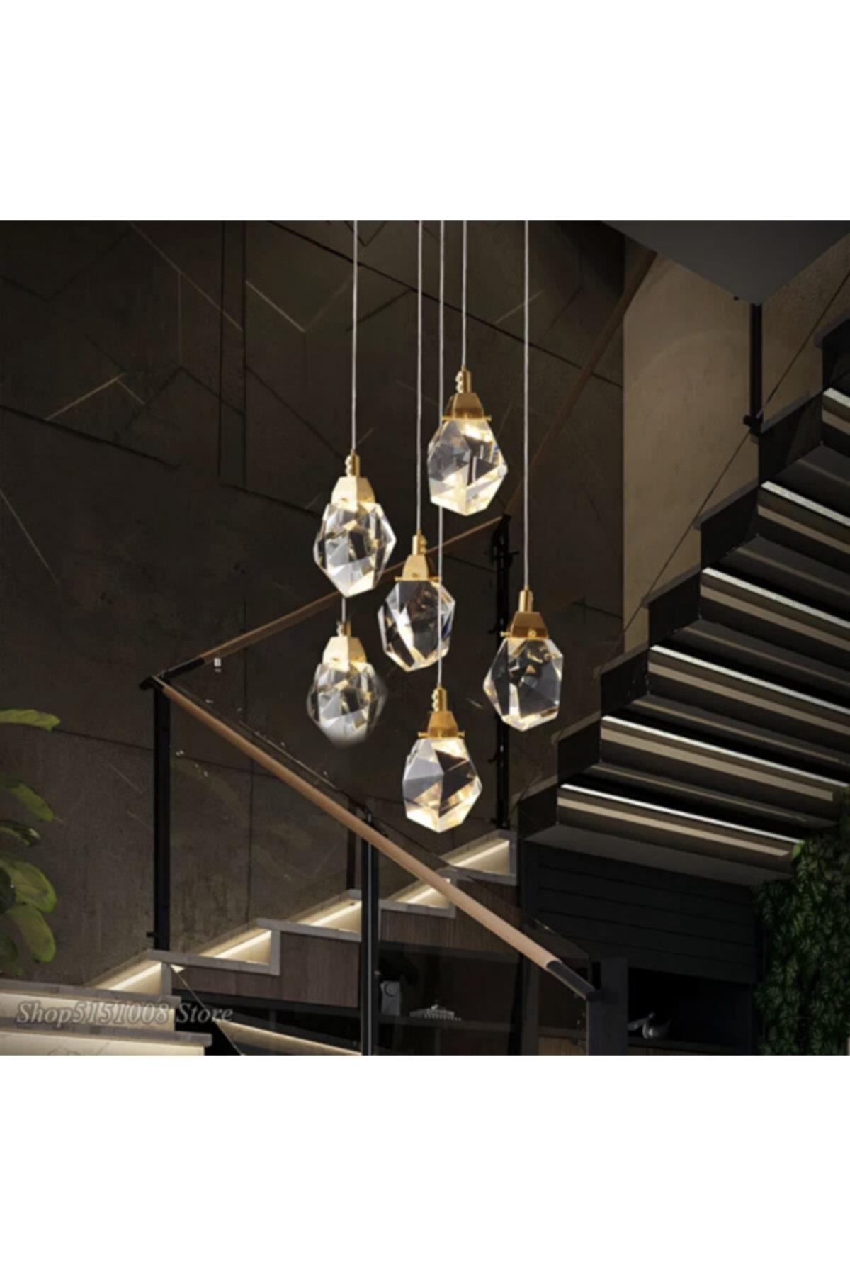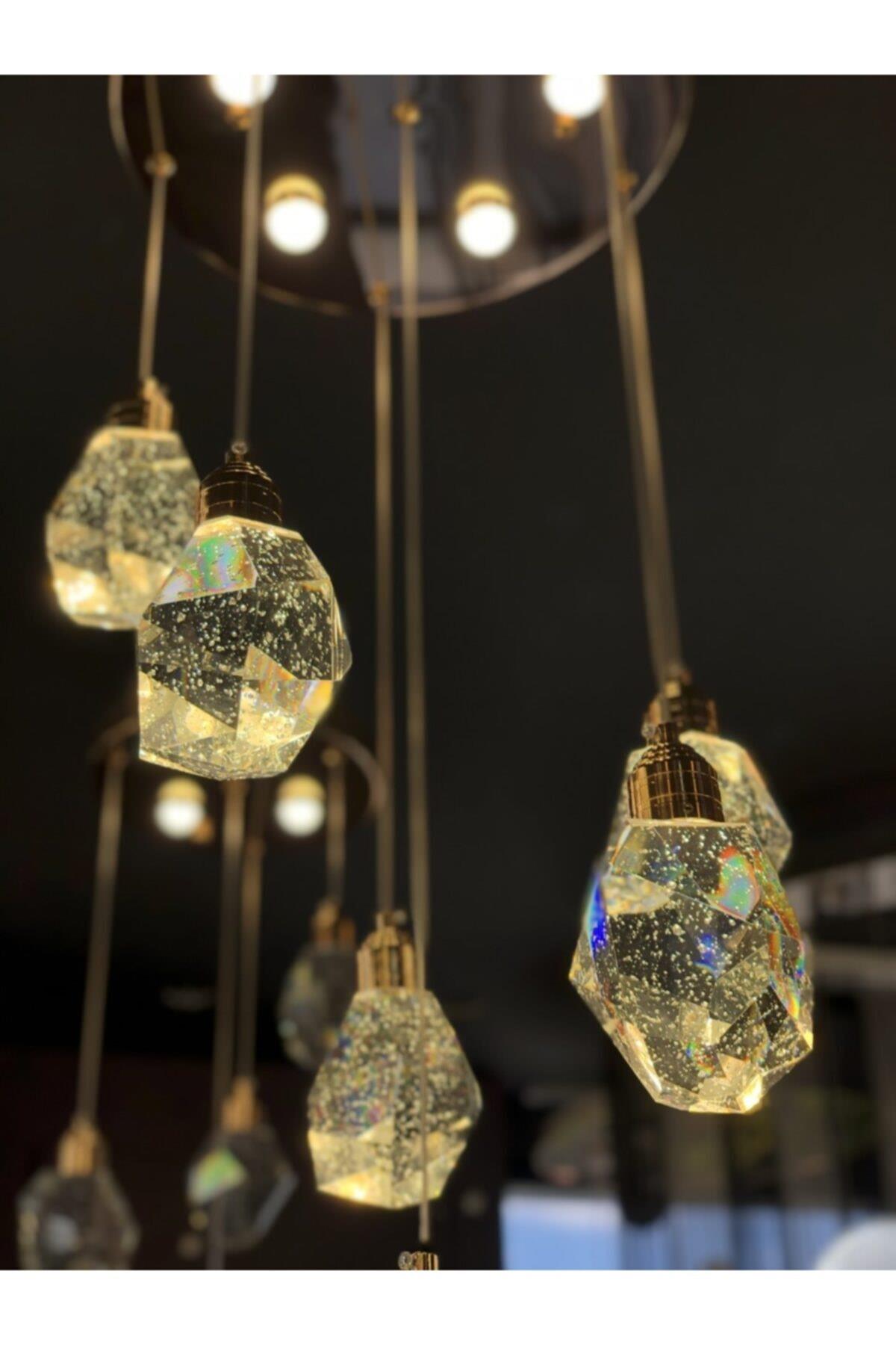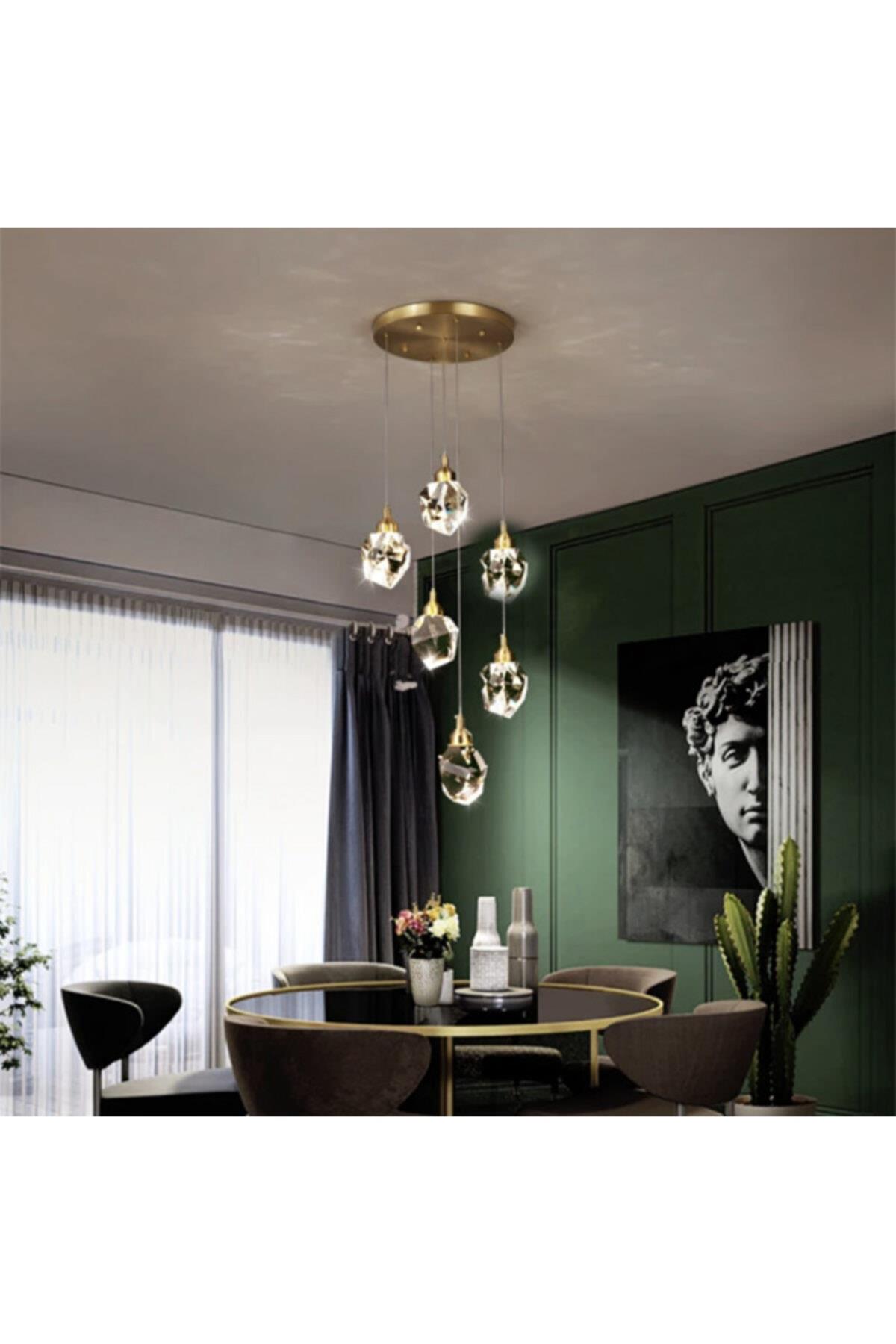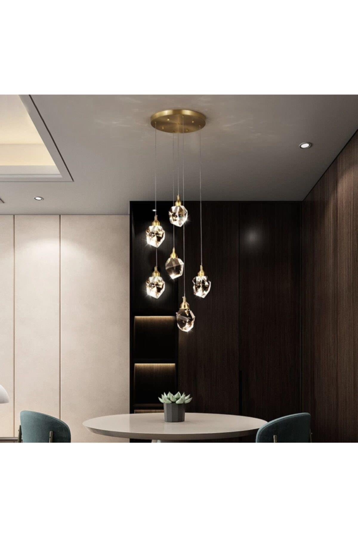 Gold Sarı Gün Işığı A+ Luxury Modern Kristalize Cam Sarkıt Altılı Power Led Avize