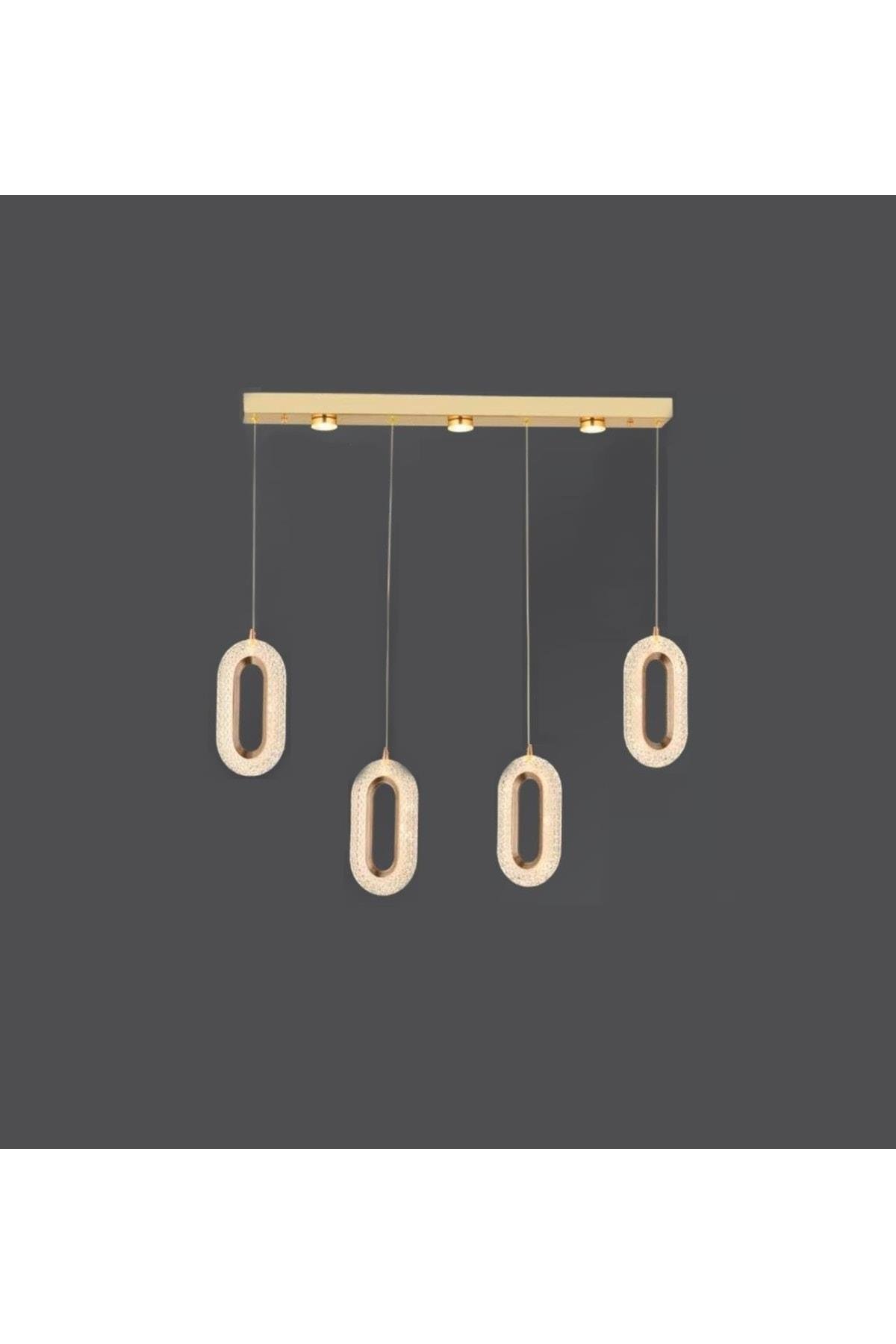 Kademeli 3 Renk Luxury Crystal Led Avize 4'lü Sıralı Gold Sarı Concept Ürün Ledli Avize