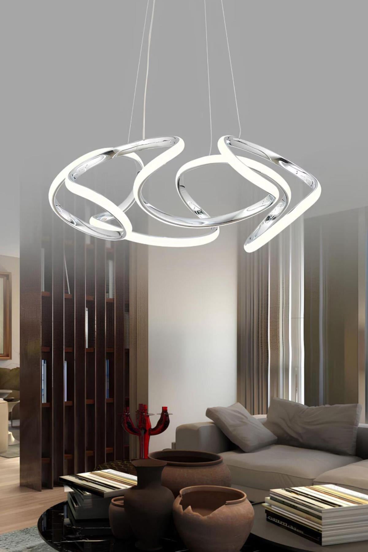Ledli Modern Pagani Sarkıt Led Avize Salon Mutfak Oturma Odası Avize Krom 45 Cm Büyük Boy