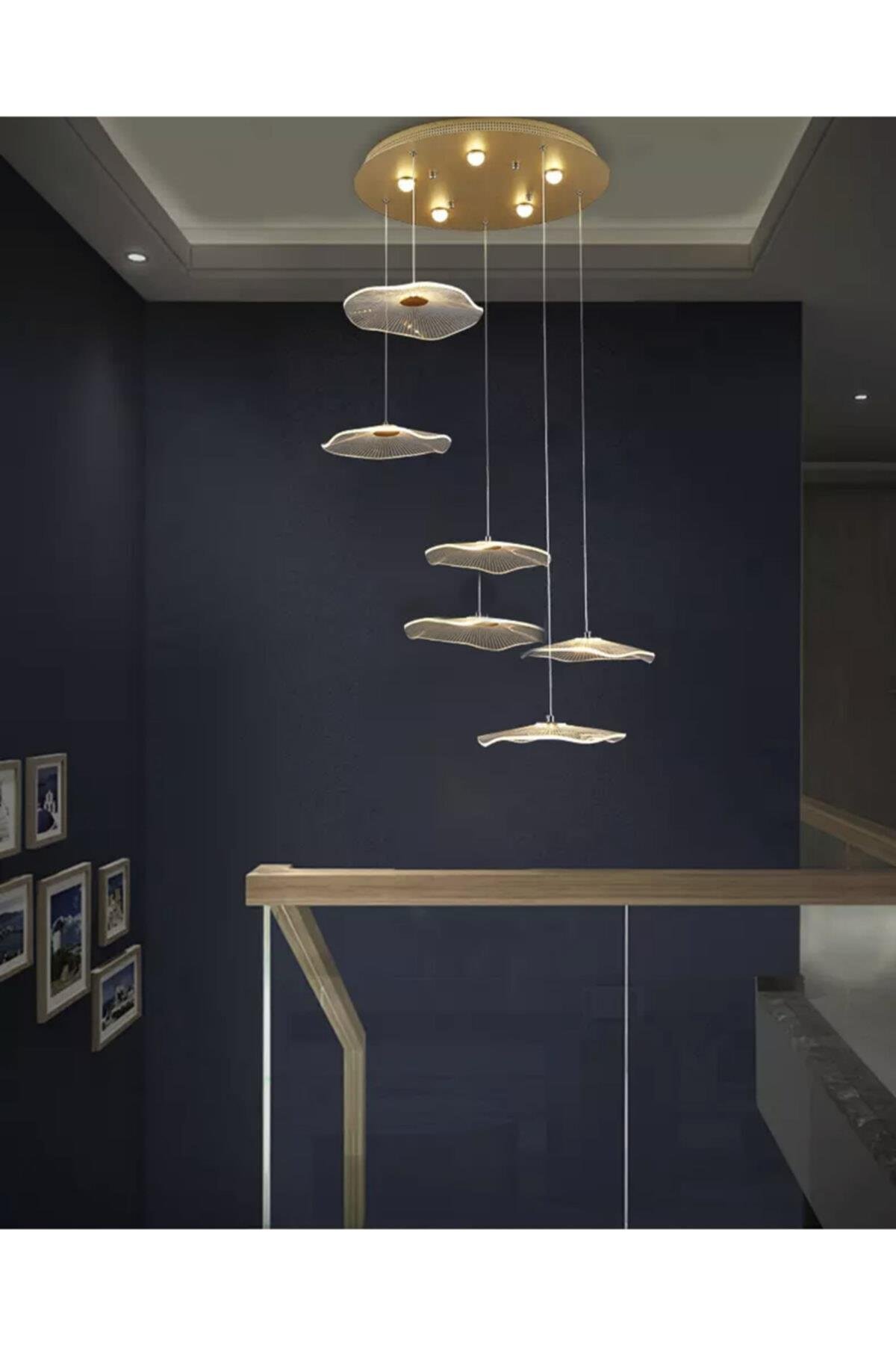 Luxury Exclusive Altılı Yuvarlak Sarkıt Led Avize Jellyfish Gold Sarı 6'lı Ledli Avize