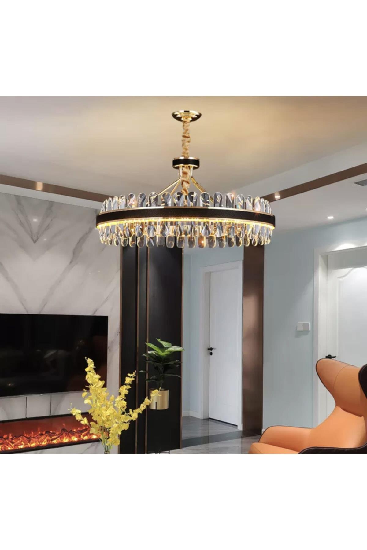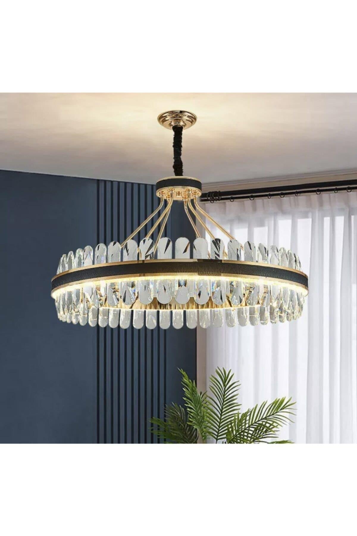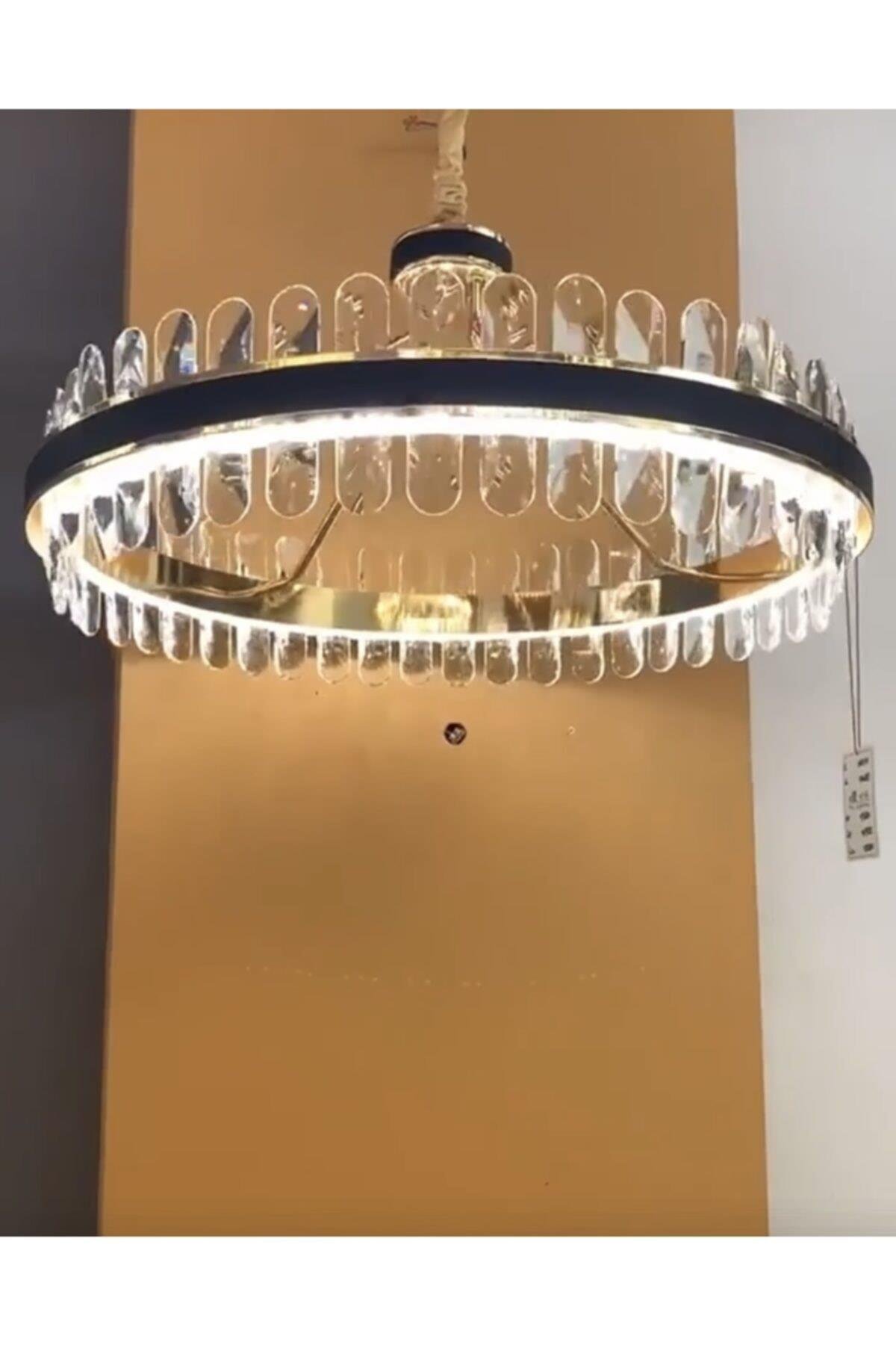 Luxury Exclusive Modern Sarkıt Kristal Taşlı Led Avize Gold Sarı 60'lık Kademeli 3 Renk Işık