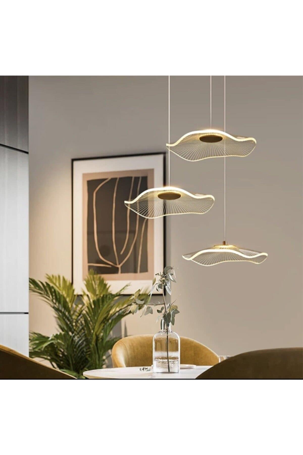 Luxury Exclusive Üçlü Yuvarlak Sarkıt Led Avize Jellyfish Gold Sarı Ledli Avize