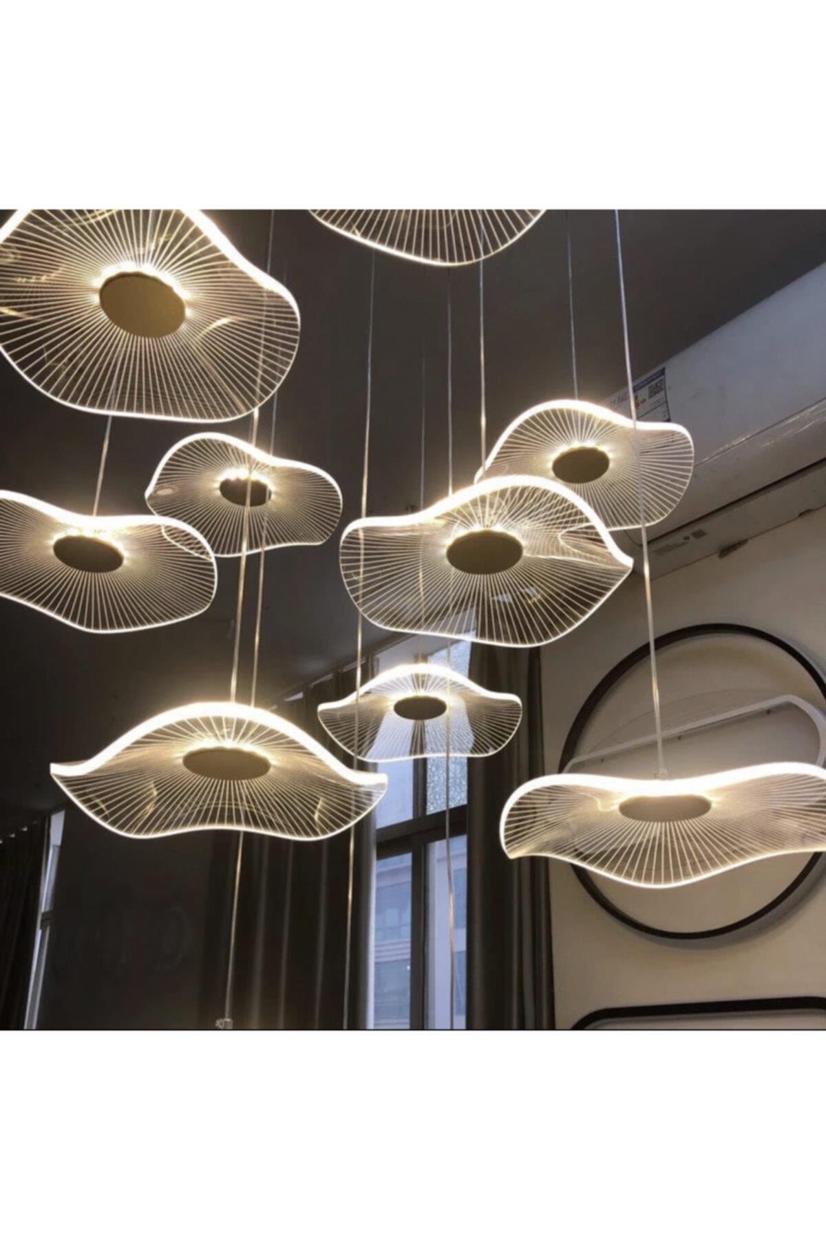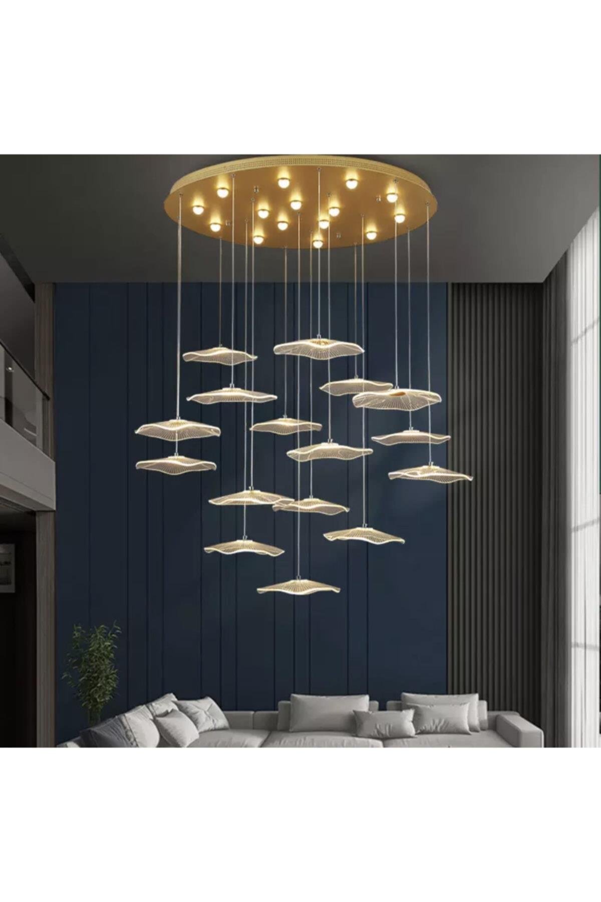 Luxury Exclusive Yuvarlak Sarkıt Led Avize Jellyfish Gold Sarı 16'lı Ledli Avize