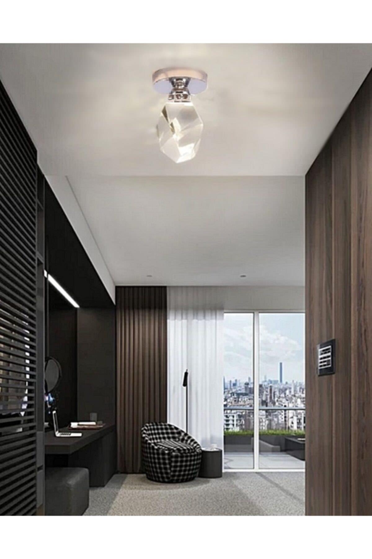 Luxury Modern Kristal Taş Led Avize Diamond Krom Ledli Avize