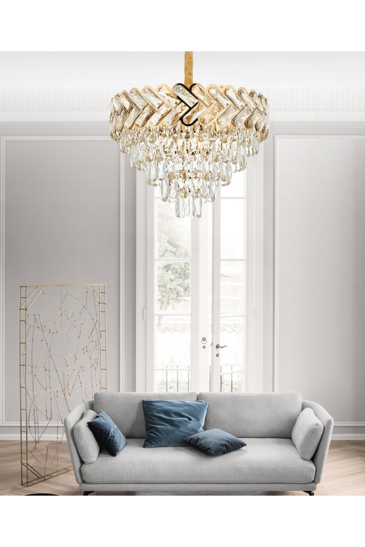 Luxury Modern Kristal Taşlı Sarkıt Avize Gold Sarı 55'lik