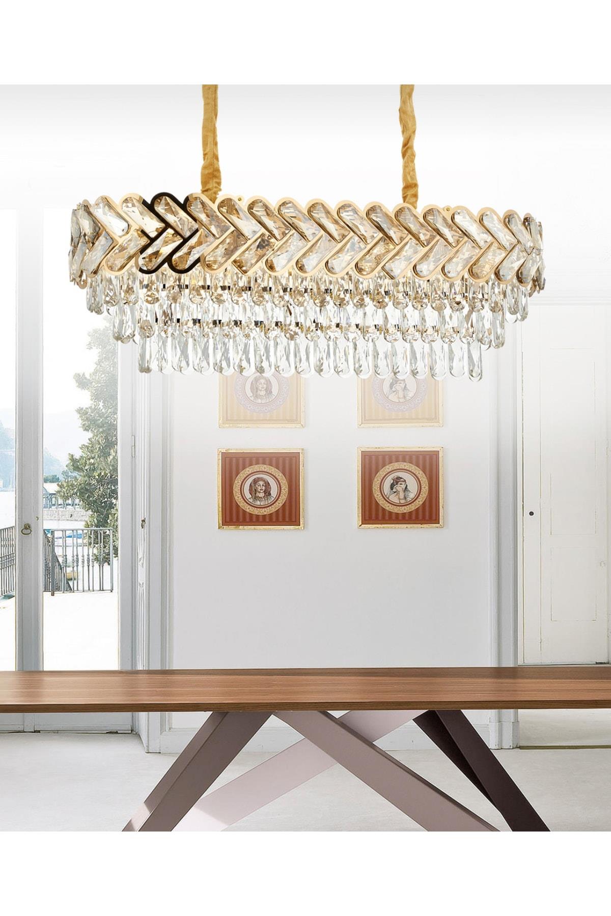 Luxury Modern Kristal Taşlı Sarkıt Avize Gold Sarı Yemek Masası