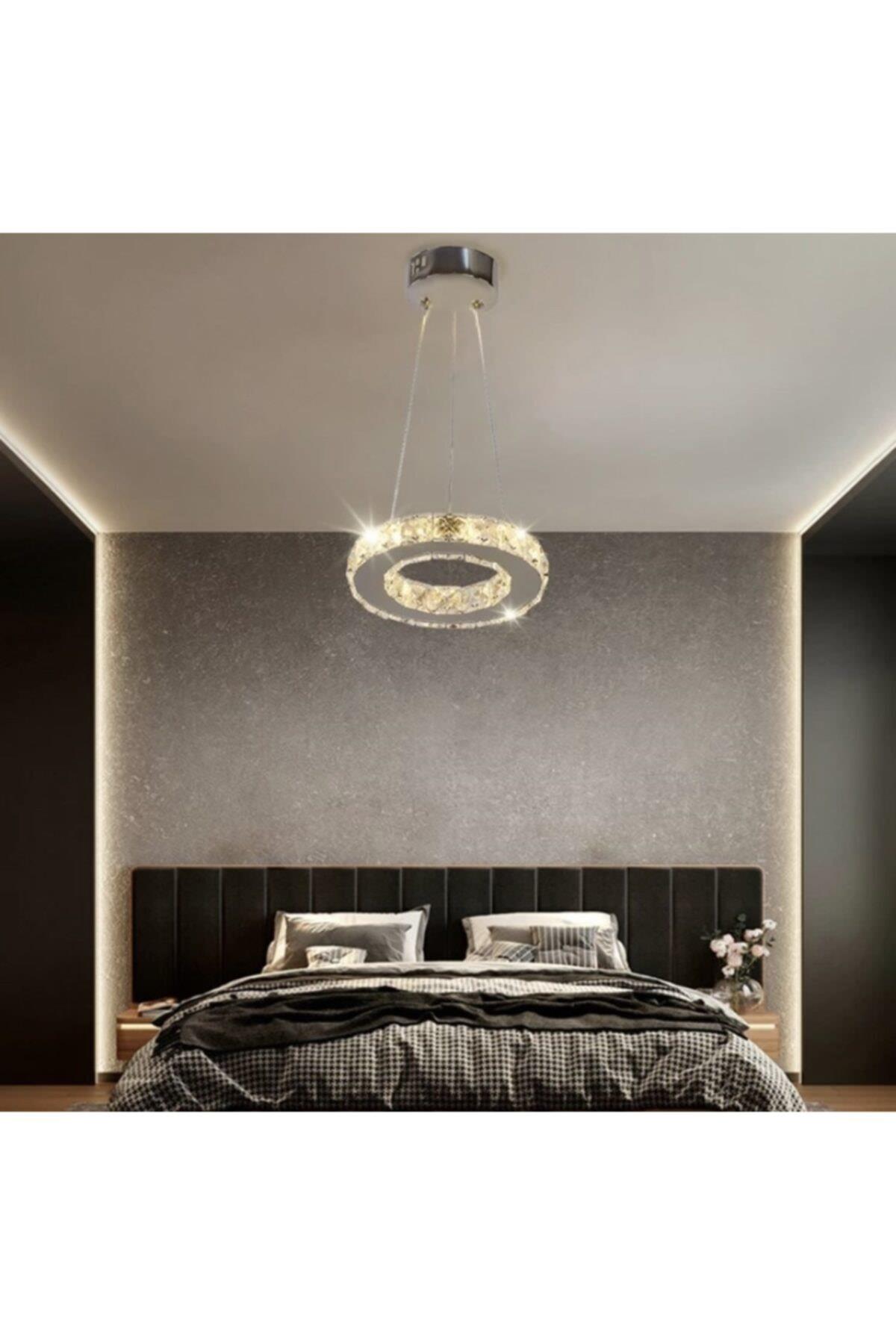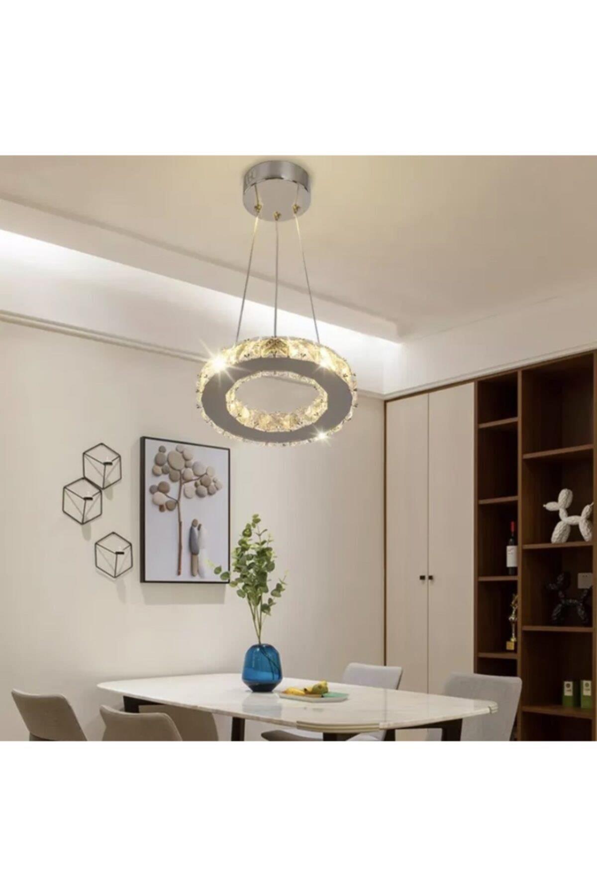 Luxury Modern Kristal Taşlı Sarkıt Led Avize Kademeli 3 Farklı Renk