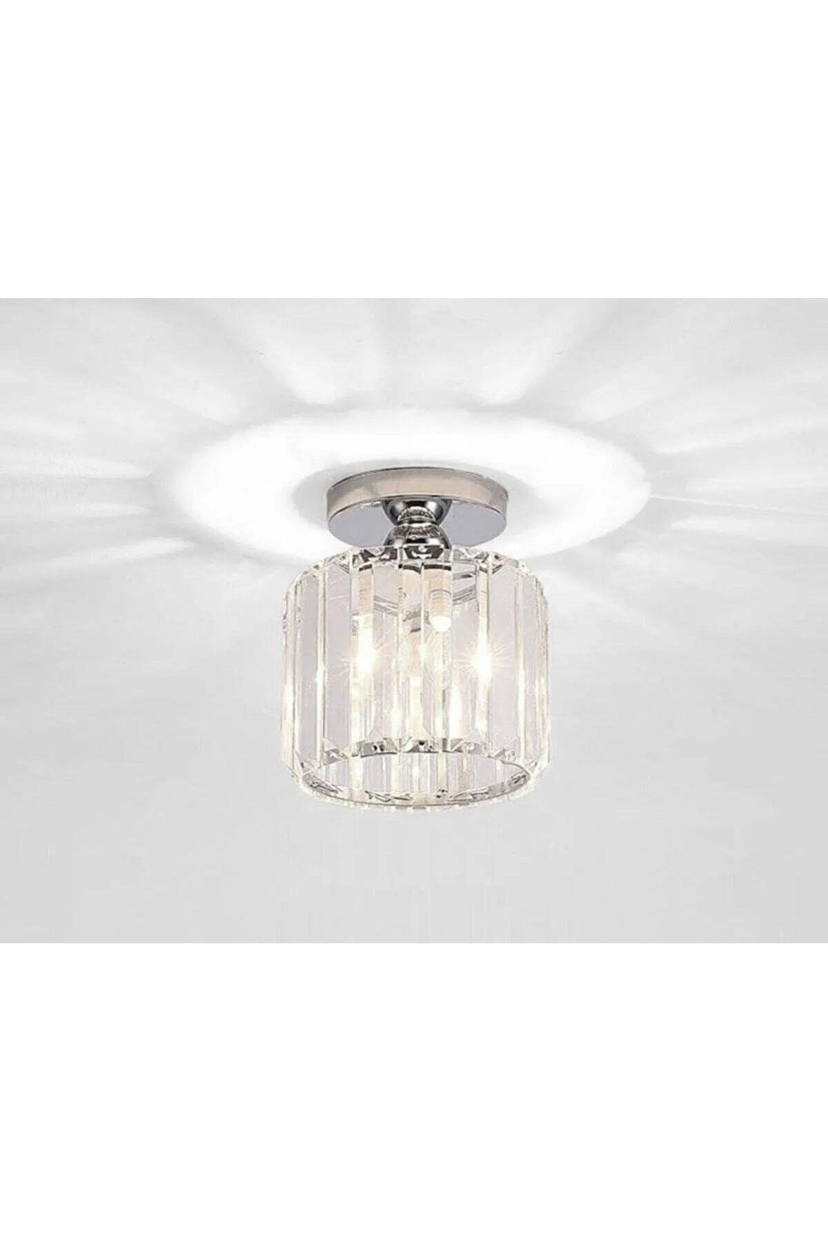 Luxury Tavan Kristal Taşlı Avize Krom Hol Antre Avize Büyük Boy - Renk: Krom -