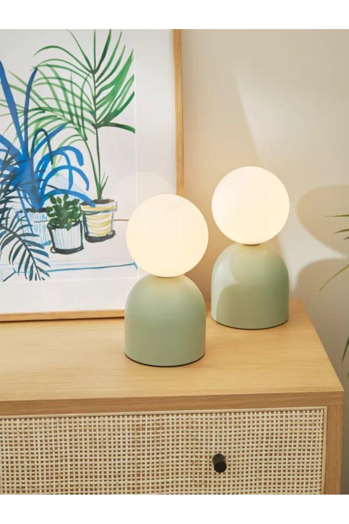 Modern Abajur Mint Green Beyaz Glop Camlı Masa Lambası