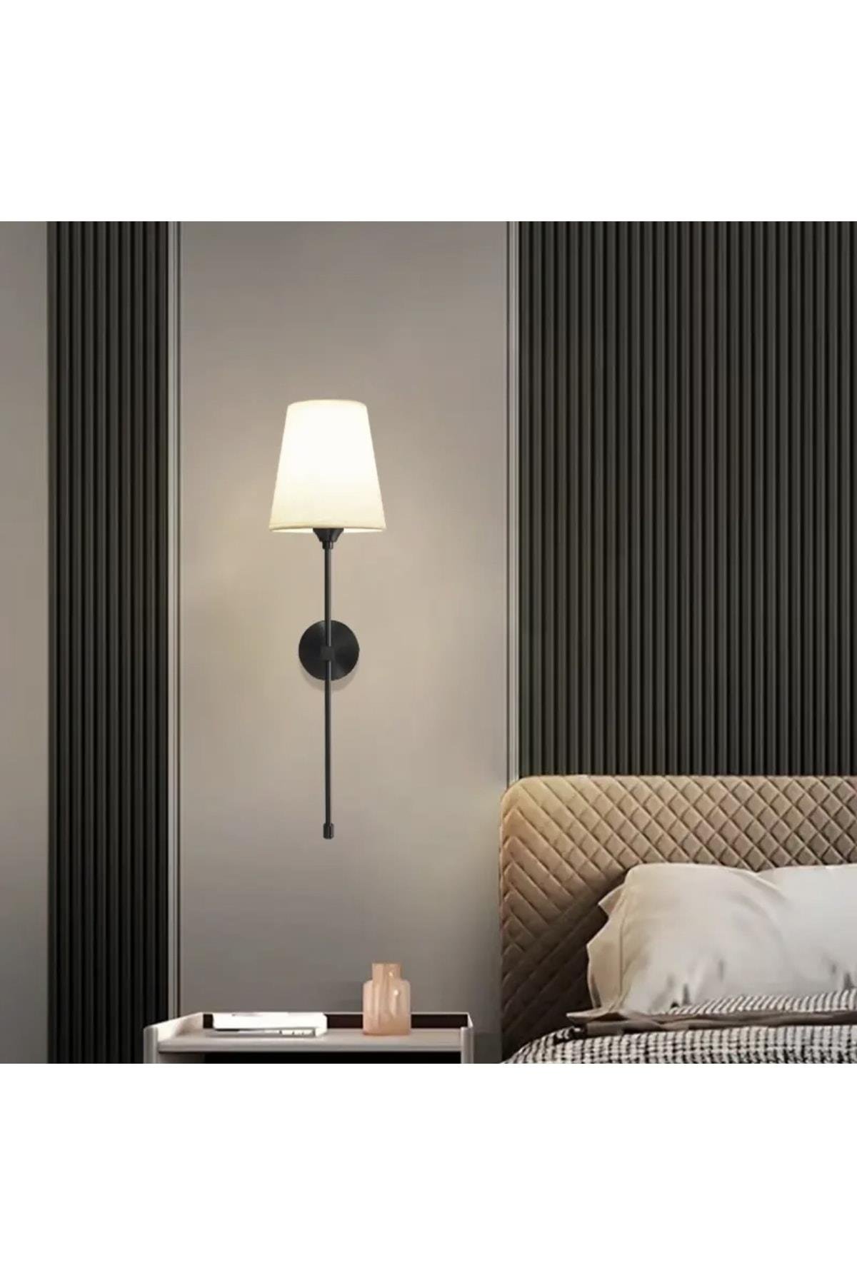 Modern Duvar Aplik Mat Siyah Gövde Beyaz Abajur Şık Görsellik Katar