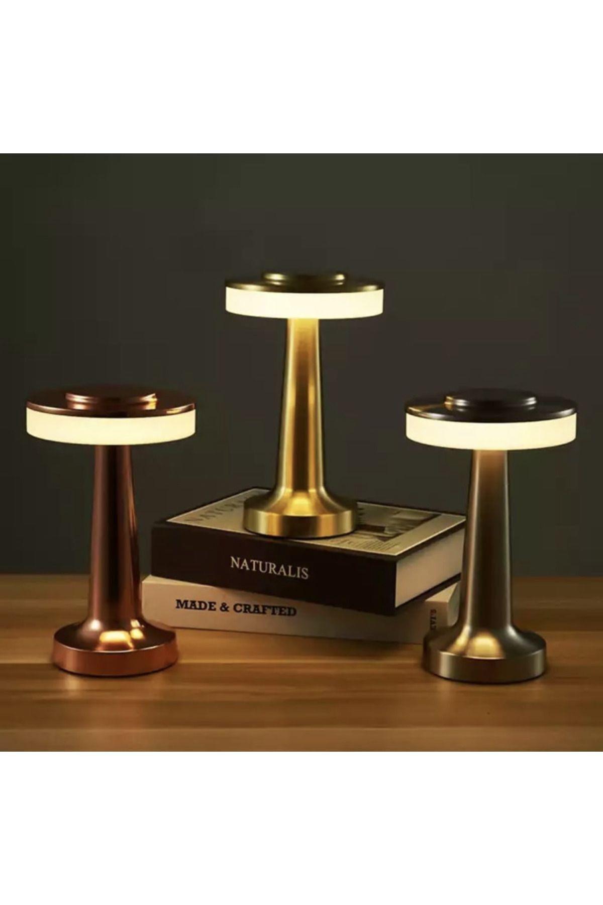 Modern Led Abajur Masa Lambası Dokunmatik 3 Mod Kademeli Şarjlı Gold Sarı (Fico0110)