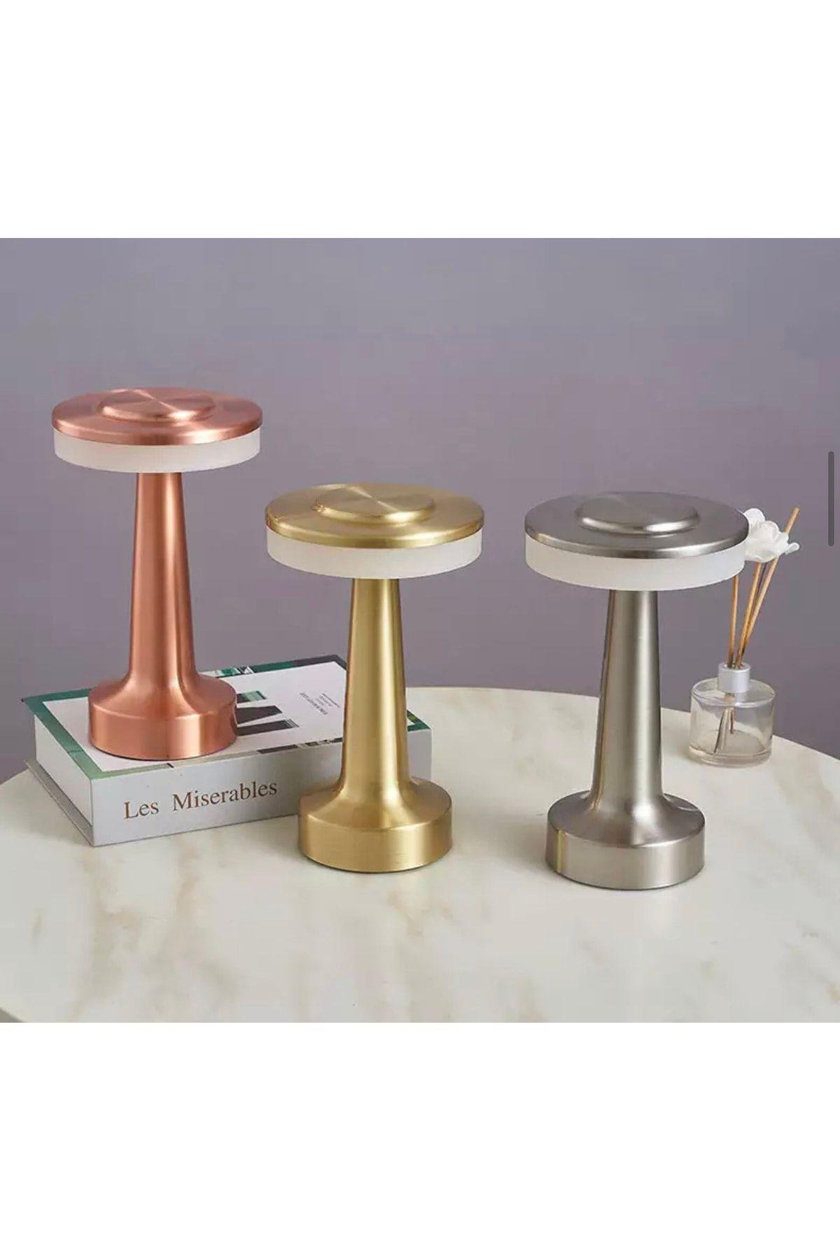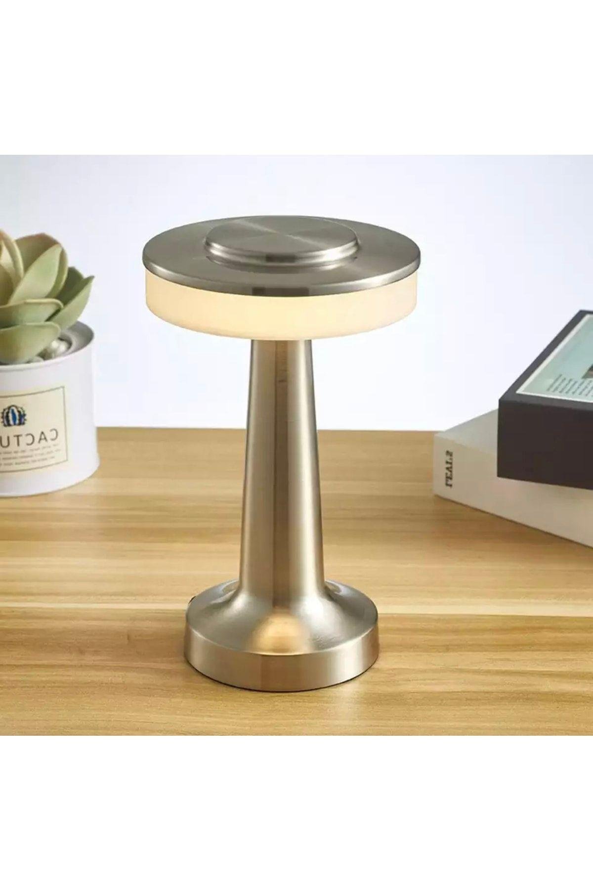 Modern Led Abajur Masa Lambası Dokunmatik 3 Mod Kademeli Şarjlı Krom Silver