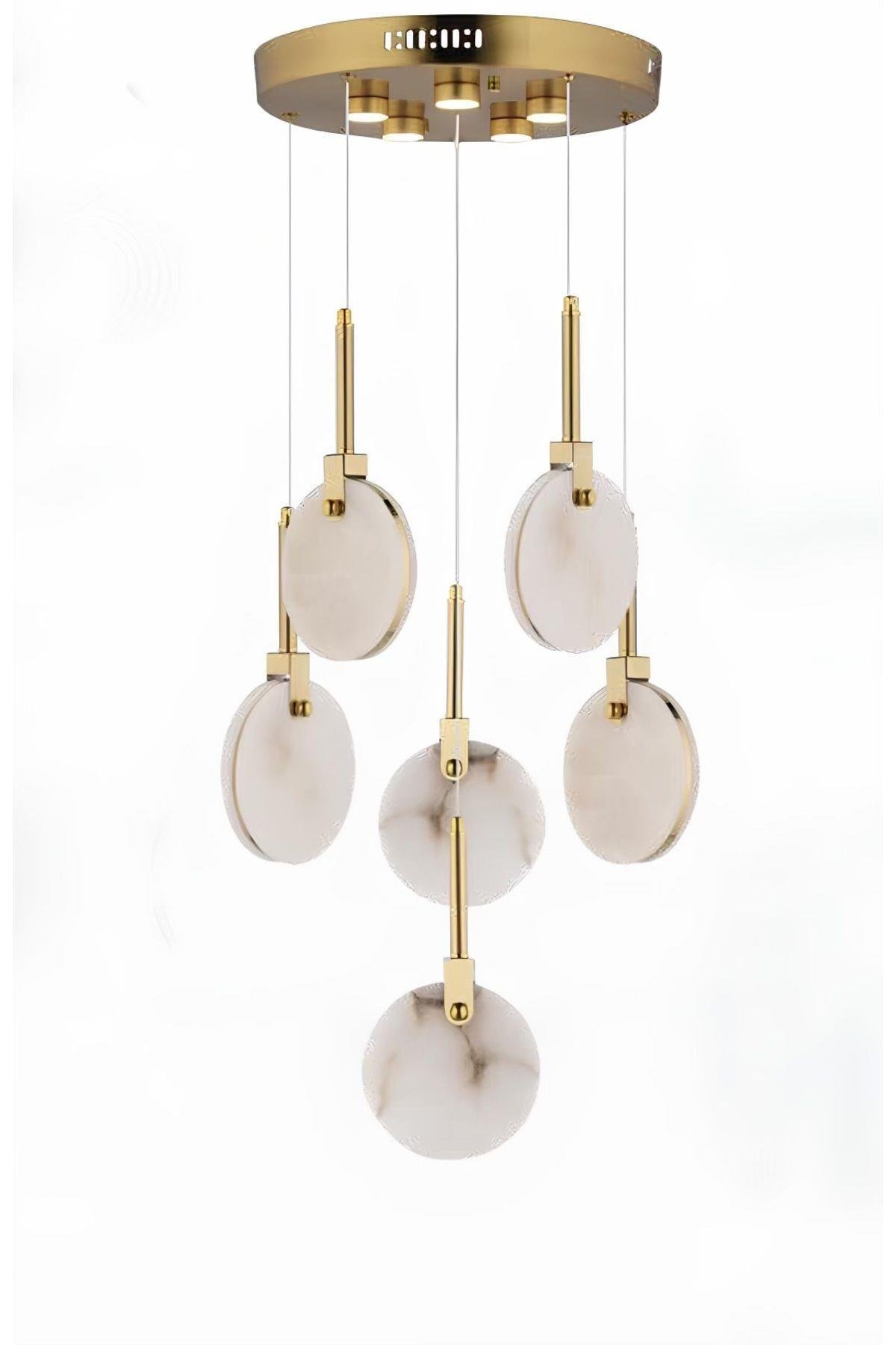 Modern Lüks Tasarım Marble Lighting Sarkıt Dörtlü Mermer Avize Eskitme Gold