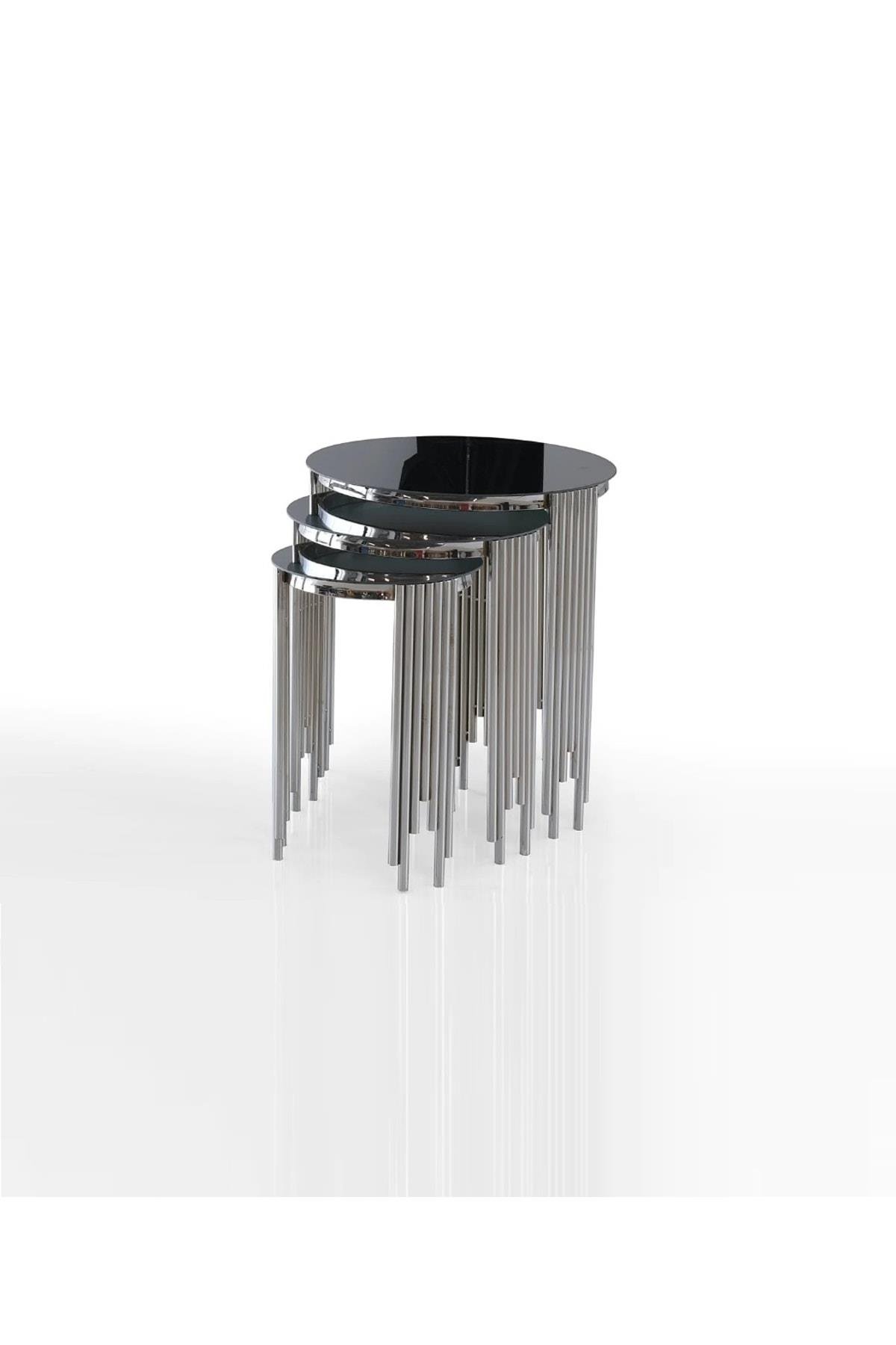 Modern Luxury Exclusive Sütun Zigon Sehpa Siyah Ayna Krom (burenze2025)