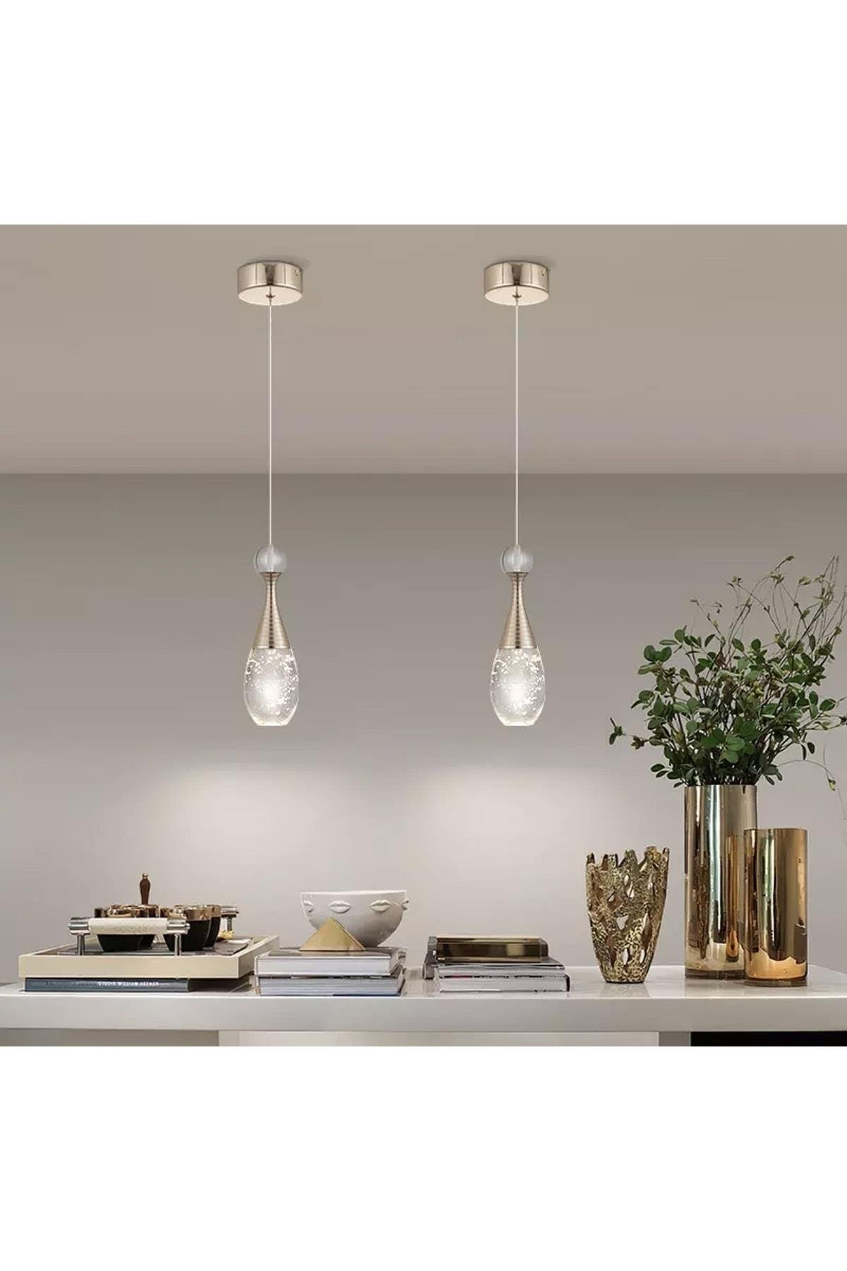Modern Luxury Jadore Tekli Avize Kristal Taşlı Sarkıt Led Avize Gold Sarı
