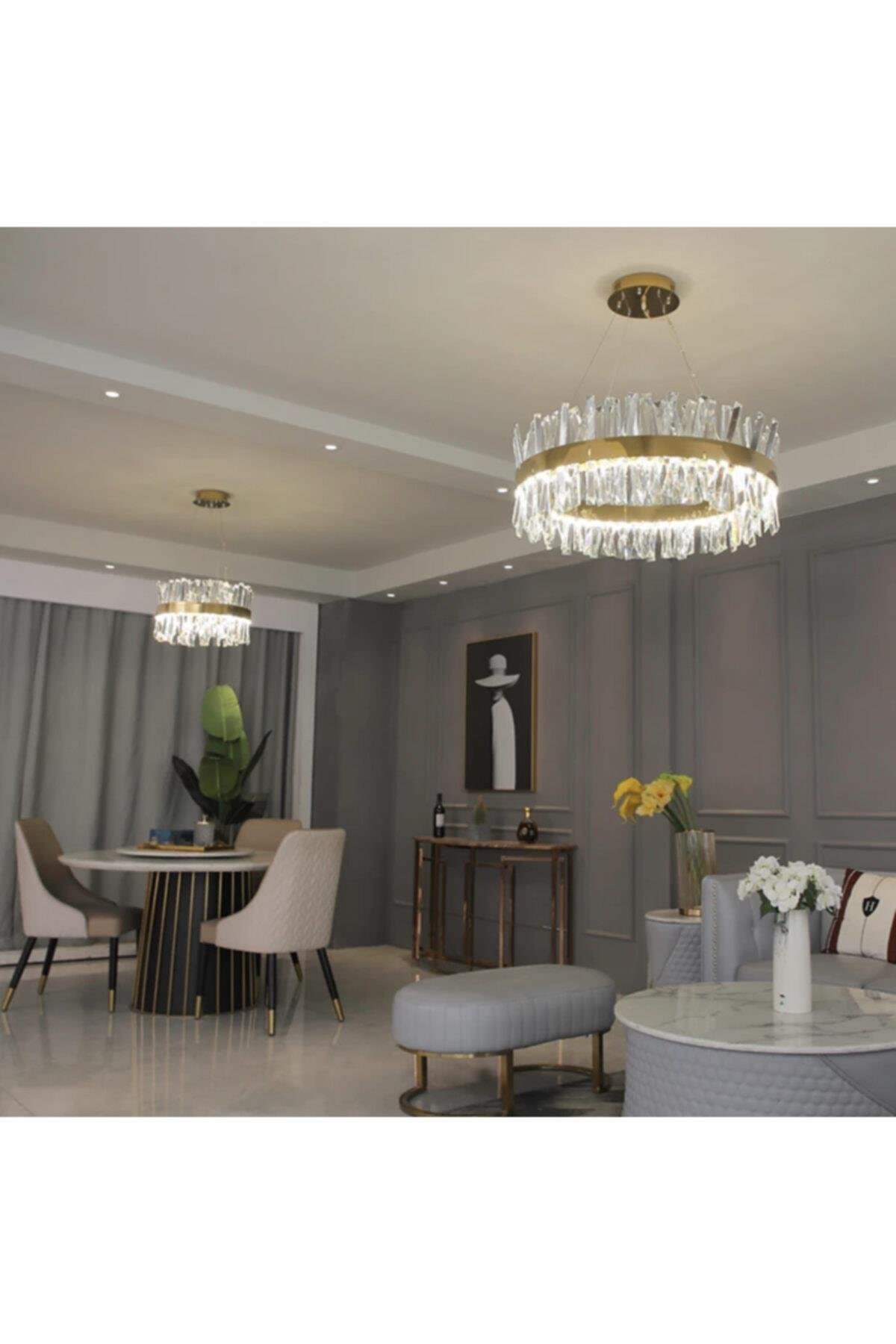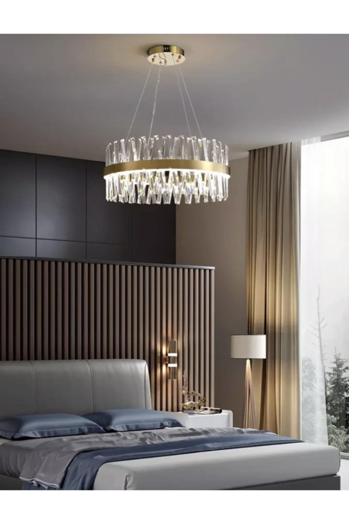 Modern Luxury Kristal Avize Kristal Taşlı Power Led Avize Bronz 50'lik