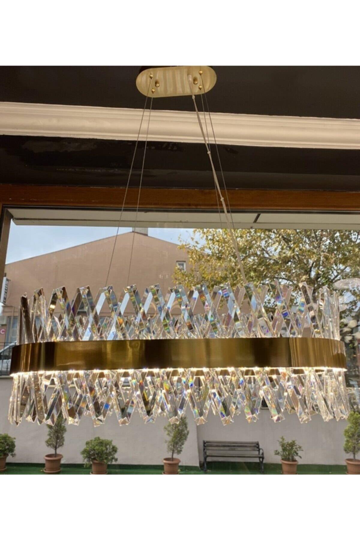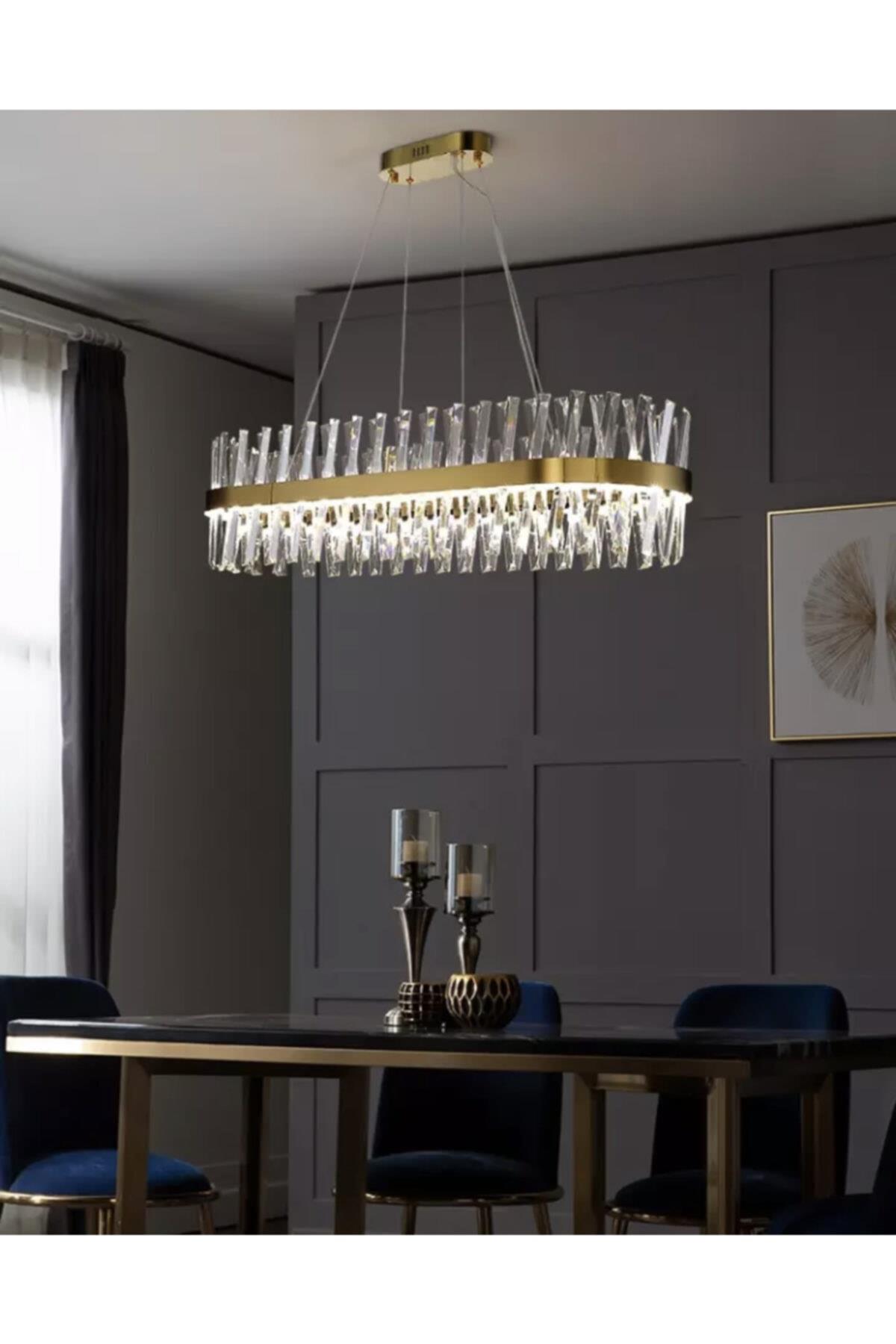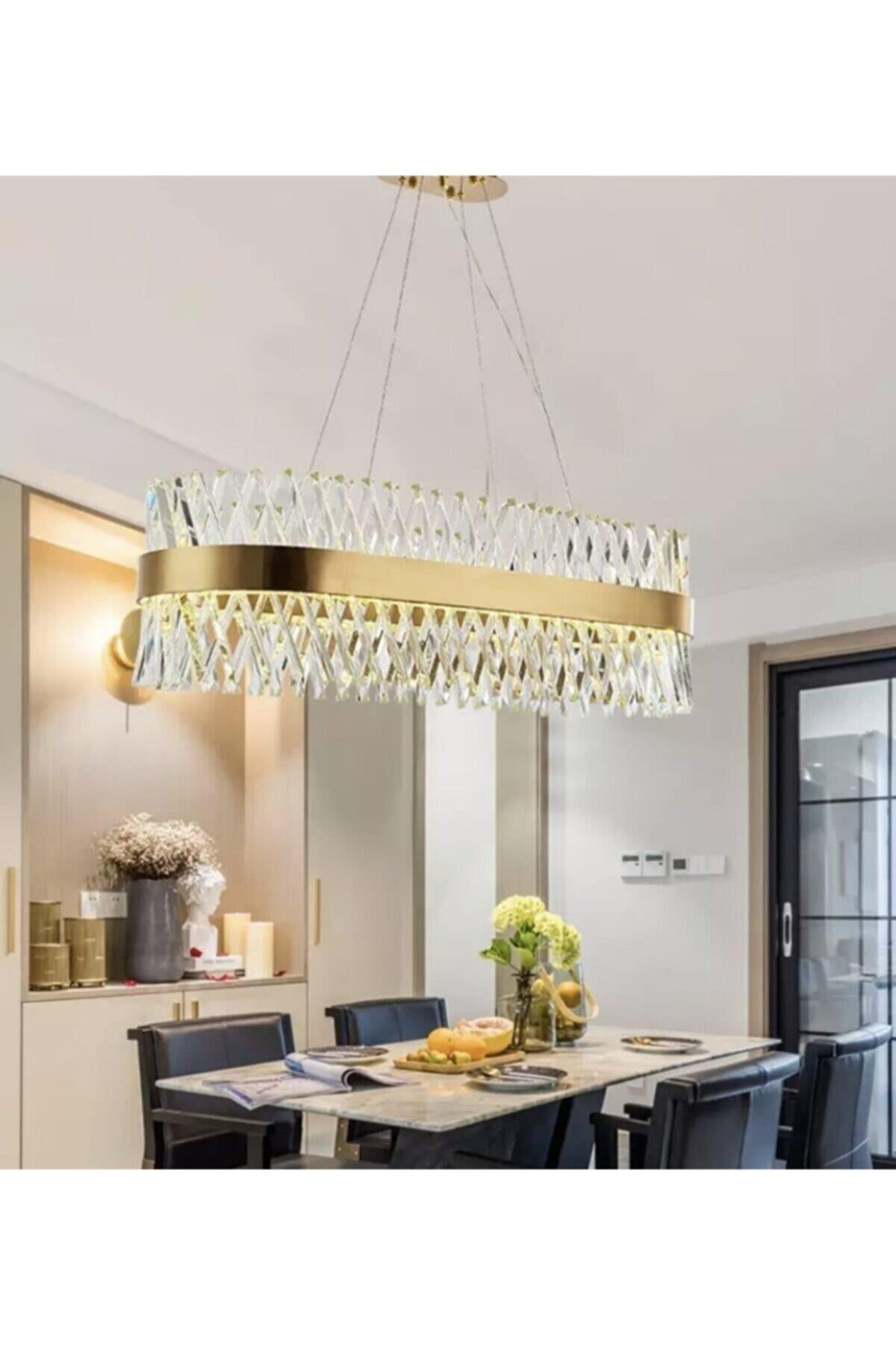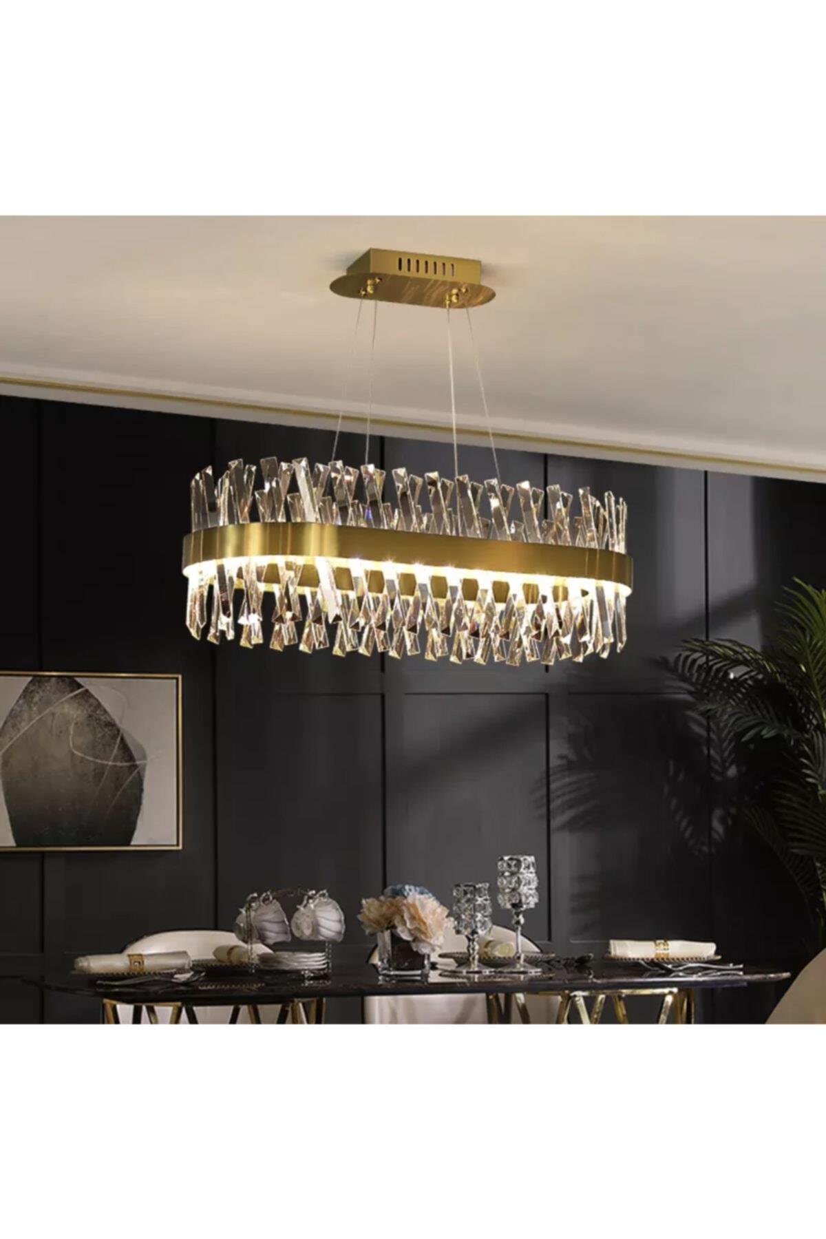 Modern Luxury Kristal Avize Kristal Taşlı Power Led Avize Bronz Yemek Masası