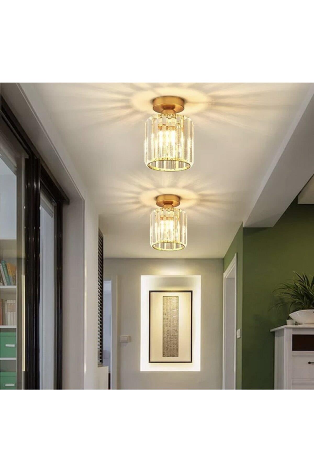 Modern Luxury Plafonyer Kristal Taşlı Avize Gold Sarı Hol Antre Avize