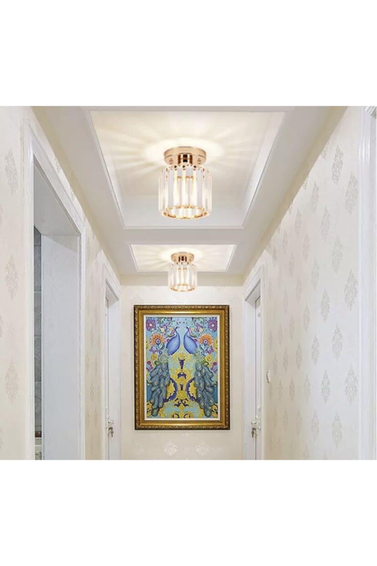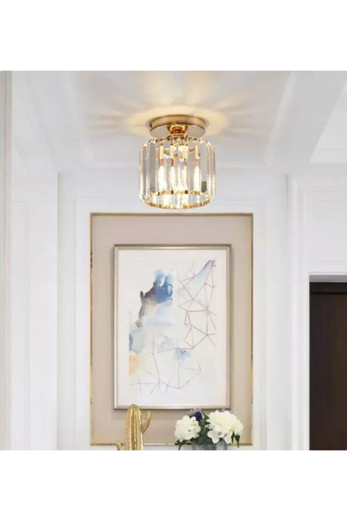 Modern Luxury Plafonyer Kristal Taşlı Avize Hol Antre Avize