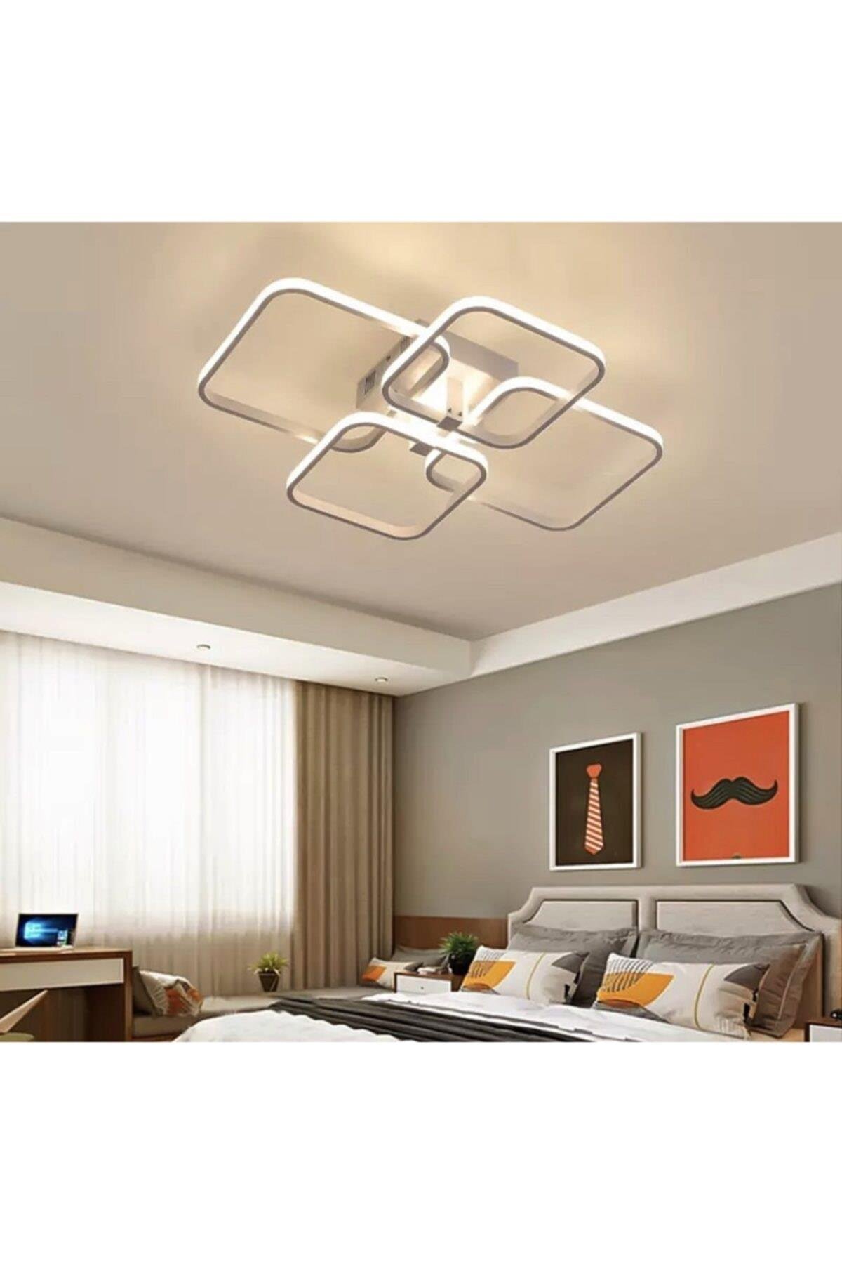 Modern Plafonyer Led Avize Krom Kare Beyaz Işık