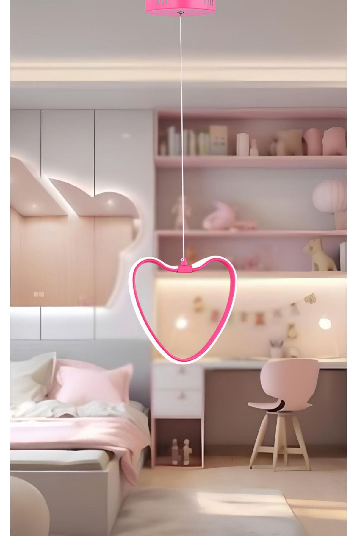 Modern Tasarım Heart Kalp Led Avize Şık Görsel Ledli Uzun Ömürlü 1. Sınıf Kalite Pembe Gövde