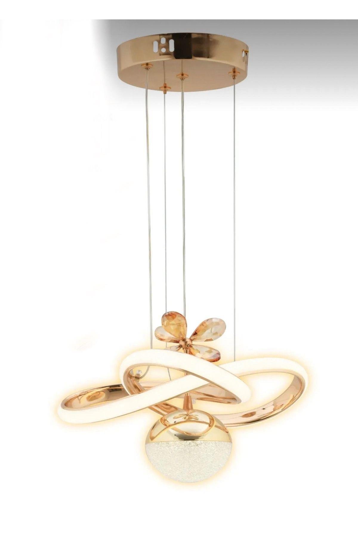 Modern Tasarım Kumandalı 3 Renk Corto Sarkıt Led Avize Kristal Taşlı Toplu Ledli Avize Gold Sarı