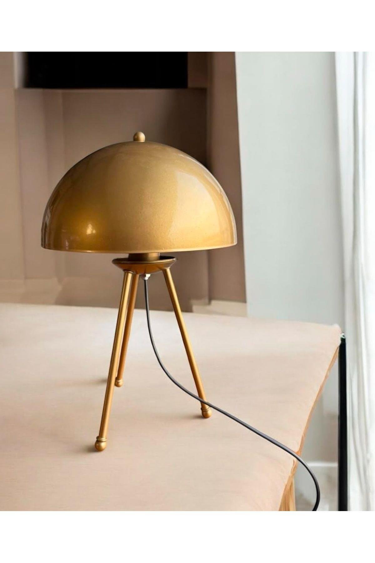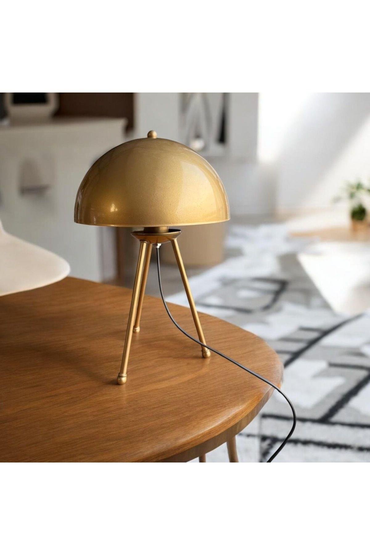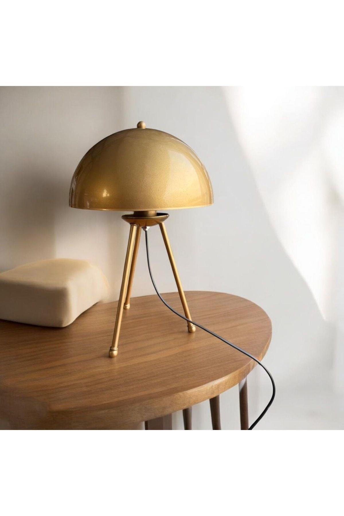 Modern Tasarım Mars Tripod Ayaklı Abajur Eskitme Gold Sarı Masa Lambası