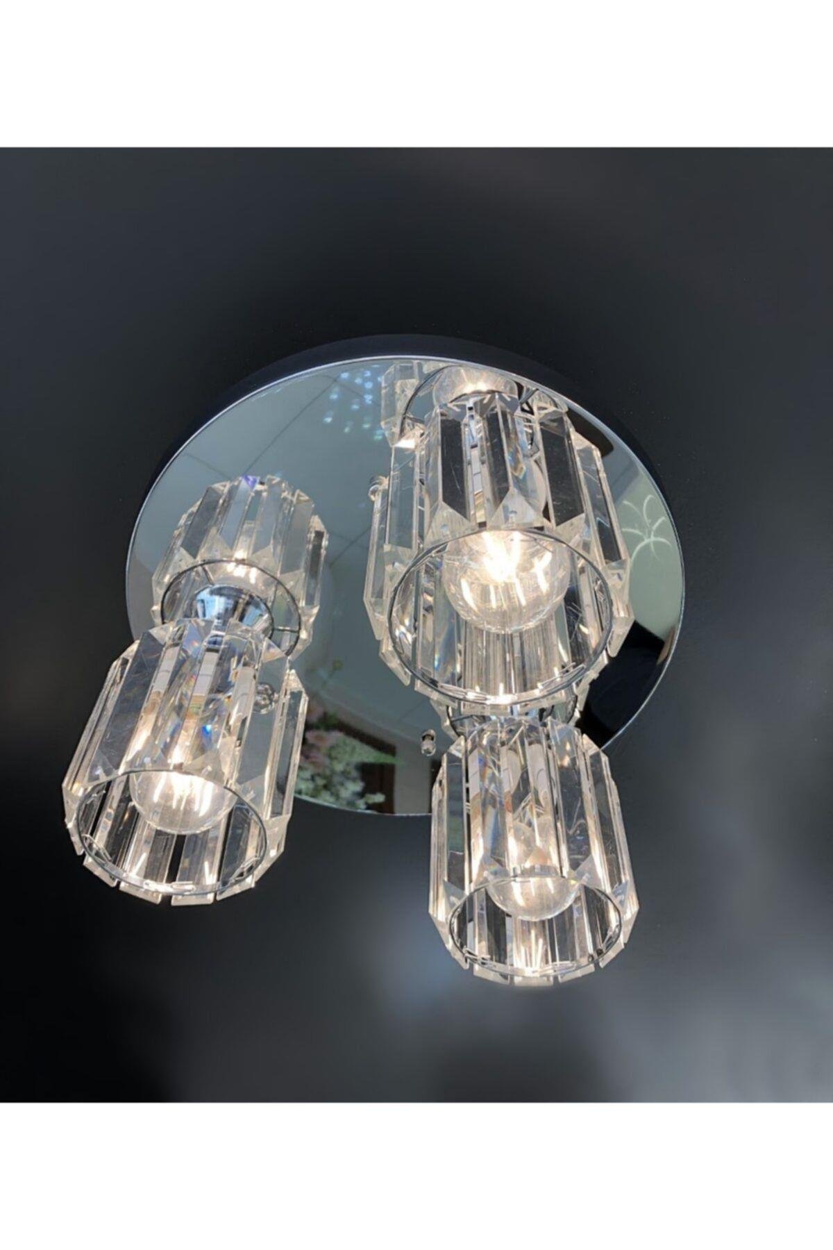 Modern Tasarım Plafonyer Kristal Taşlı Üçlü Avize Krom Şık Görsel