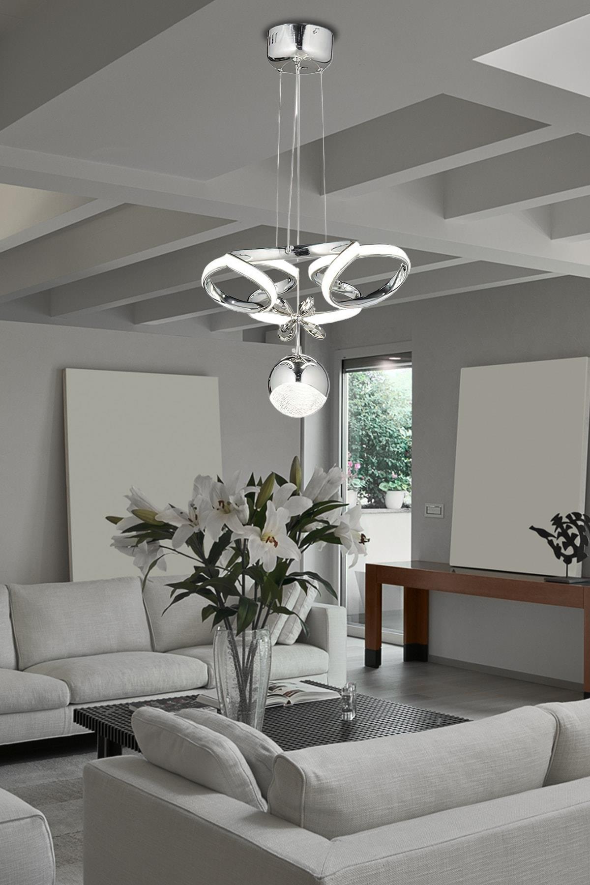 Modern Tekli Sarkıt Led Avize Krom Kelebek Taşlı Power Ledli Avize
