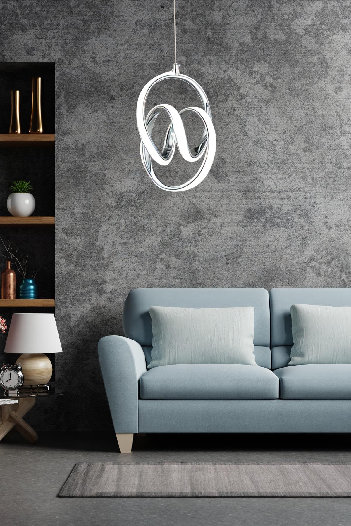 Modern Tekli Sarkıt Power Led Avize Krom Beyaz Işık Ledli Avize