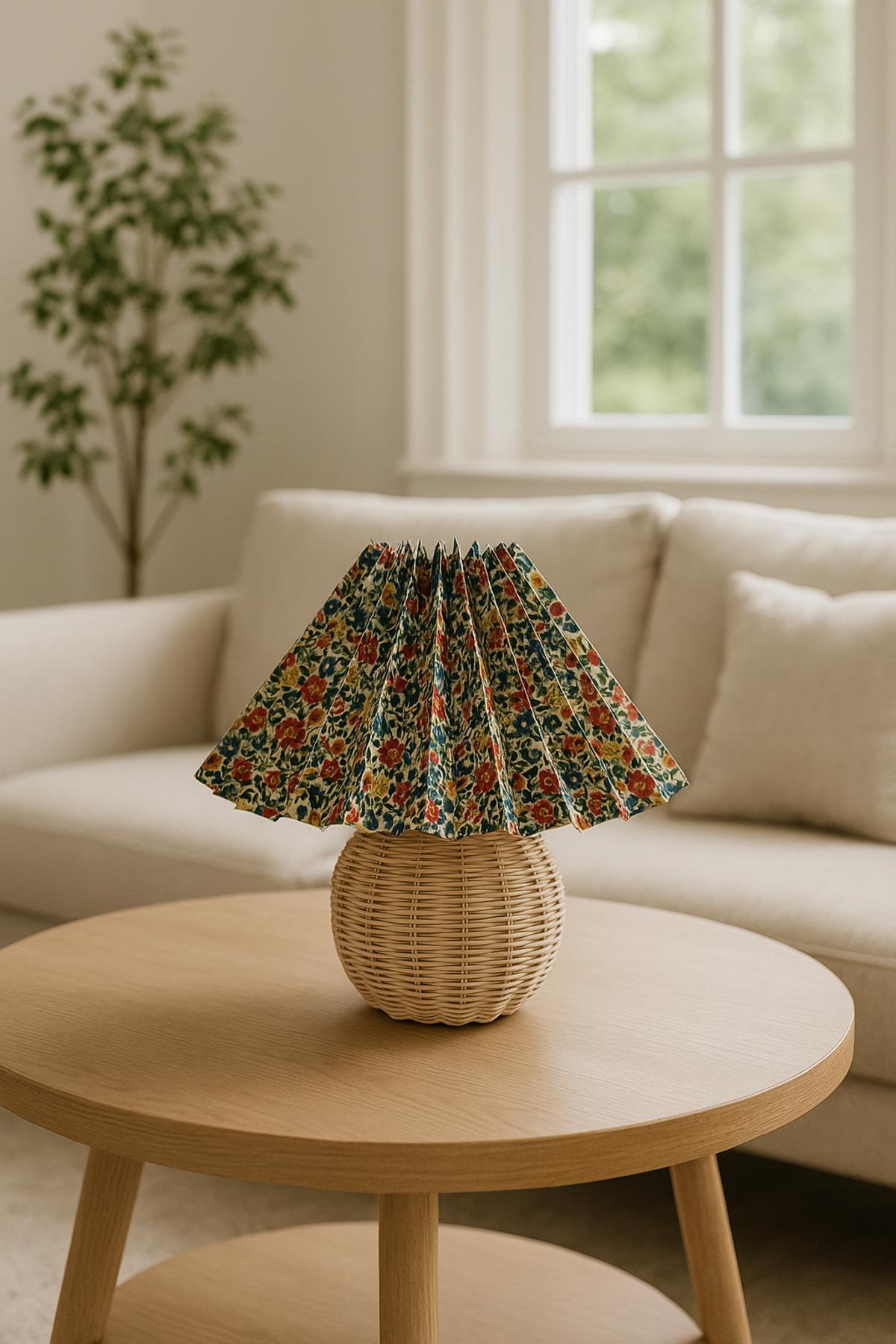 Flower Abajur Umbrella Pileli Abajurlu Hasır Gövdeli