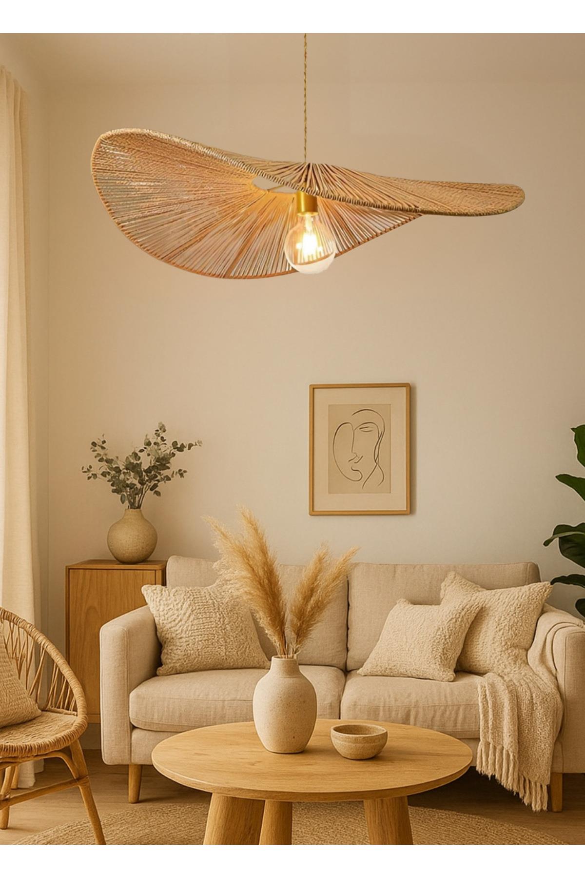 Modern İskandinav Bohem El Yapımı Hasır İp Sarkıt Avize 50 Cm