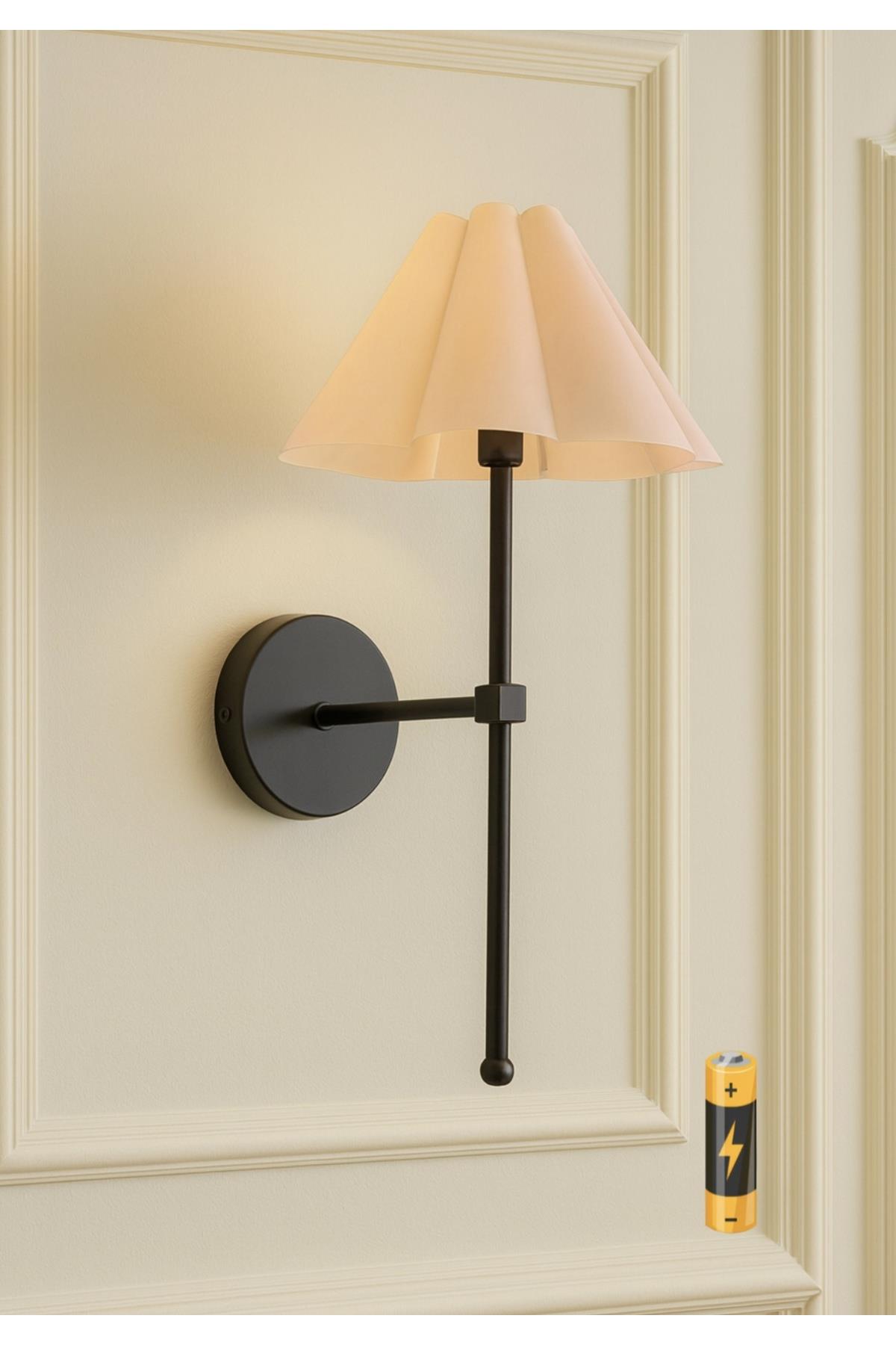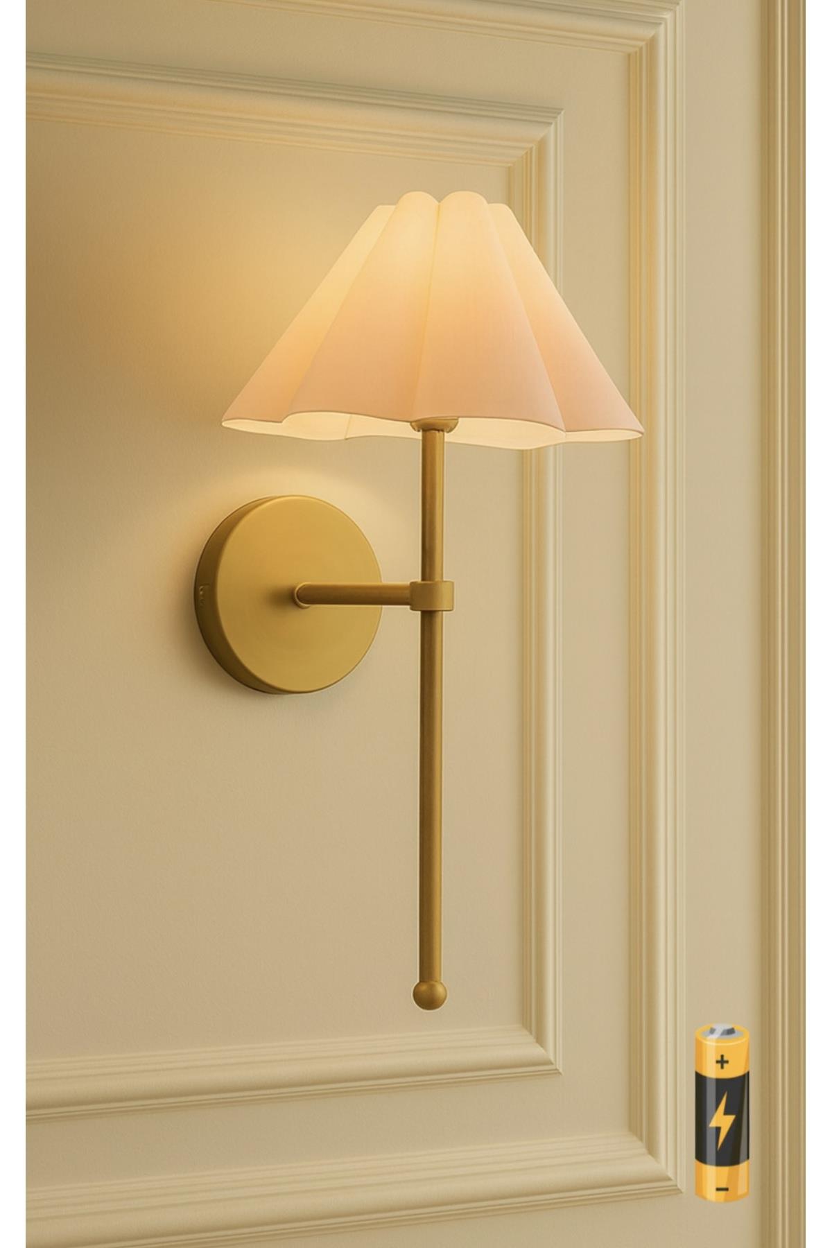 Modern Madame Fico Krem Abajurlu Pilli Aplik Aç Kapa Butonlu Kablosuz Eskitme Gold Sarı