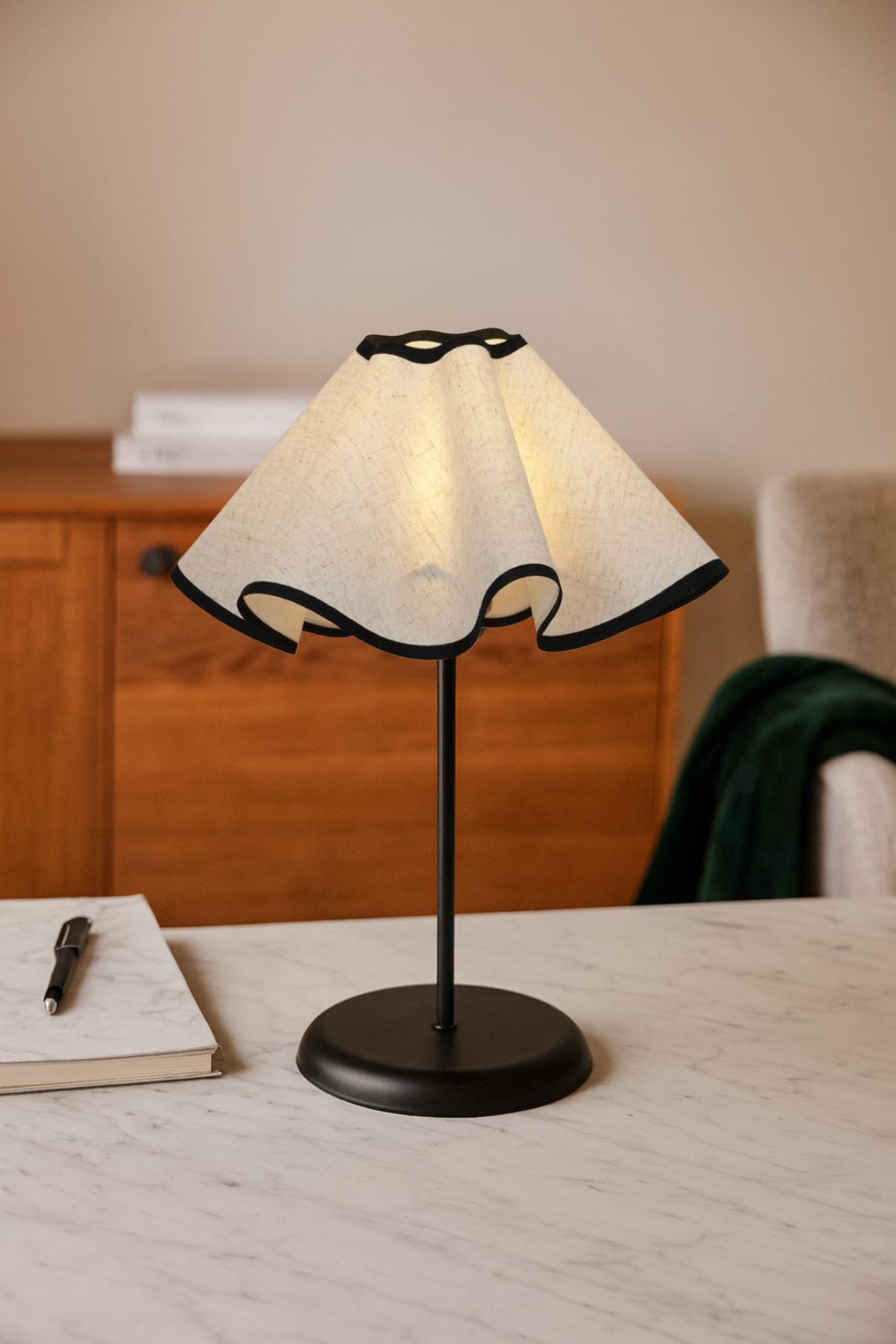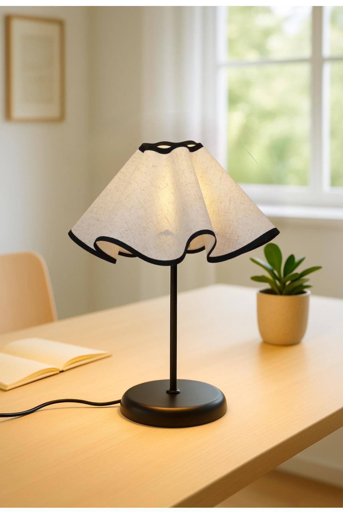Modern Signora Fico Krem Kumaş Şapkalı Siyah Abajur